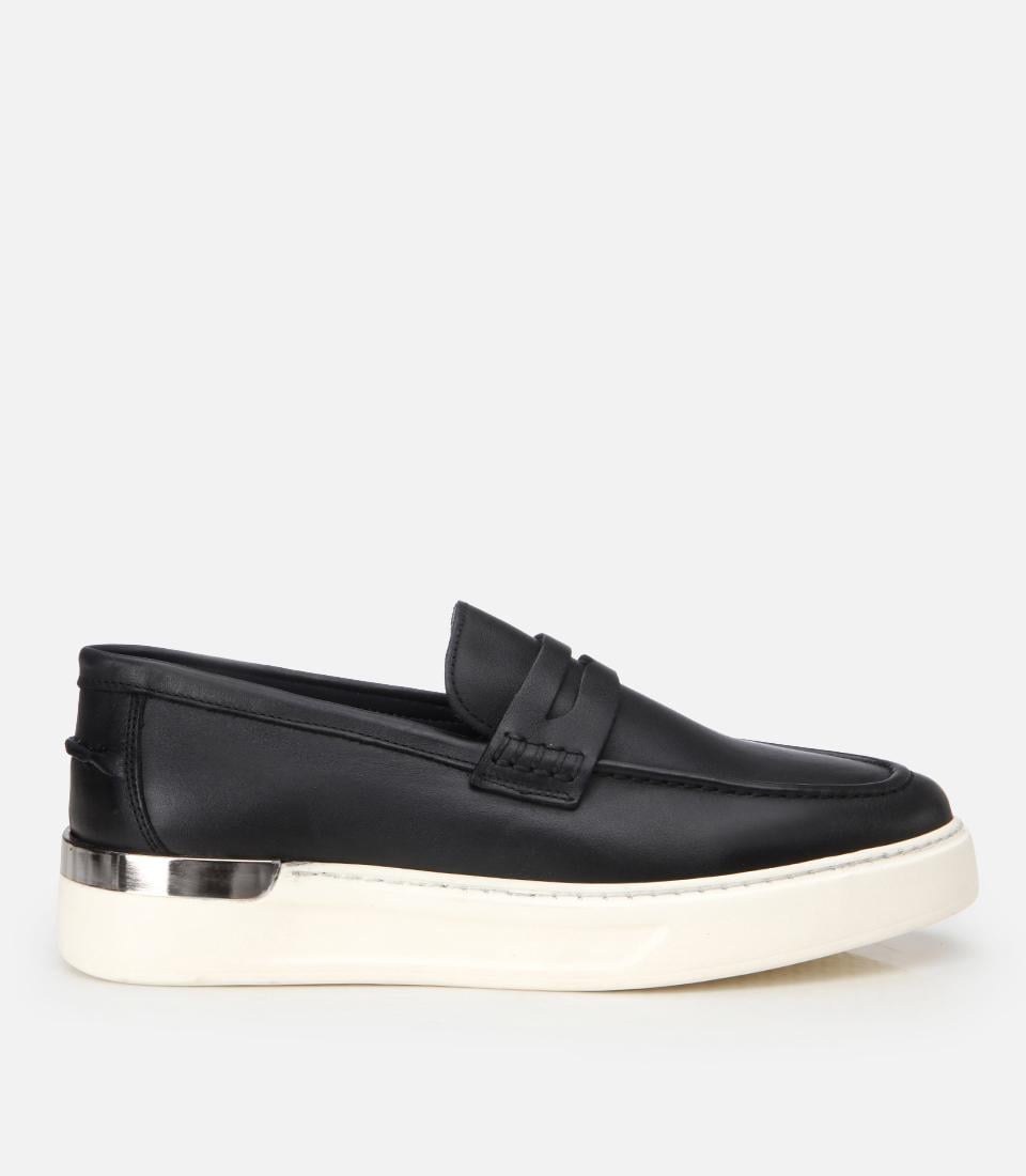 Erkek Deri Siyah Topuk Detaylı Şık Günlük Loafer