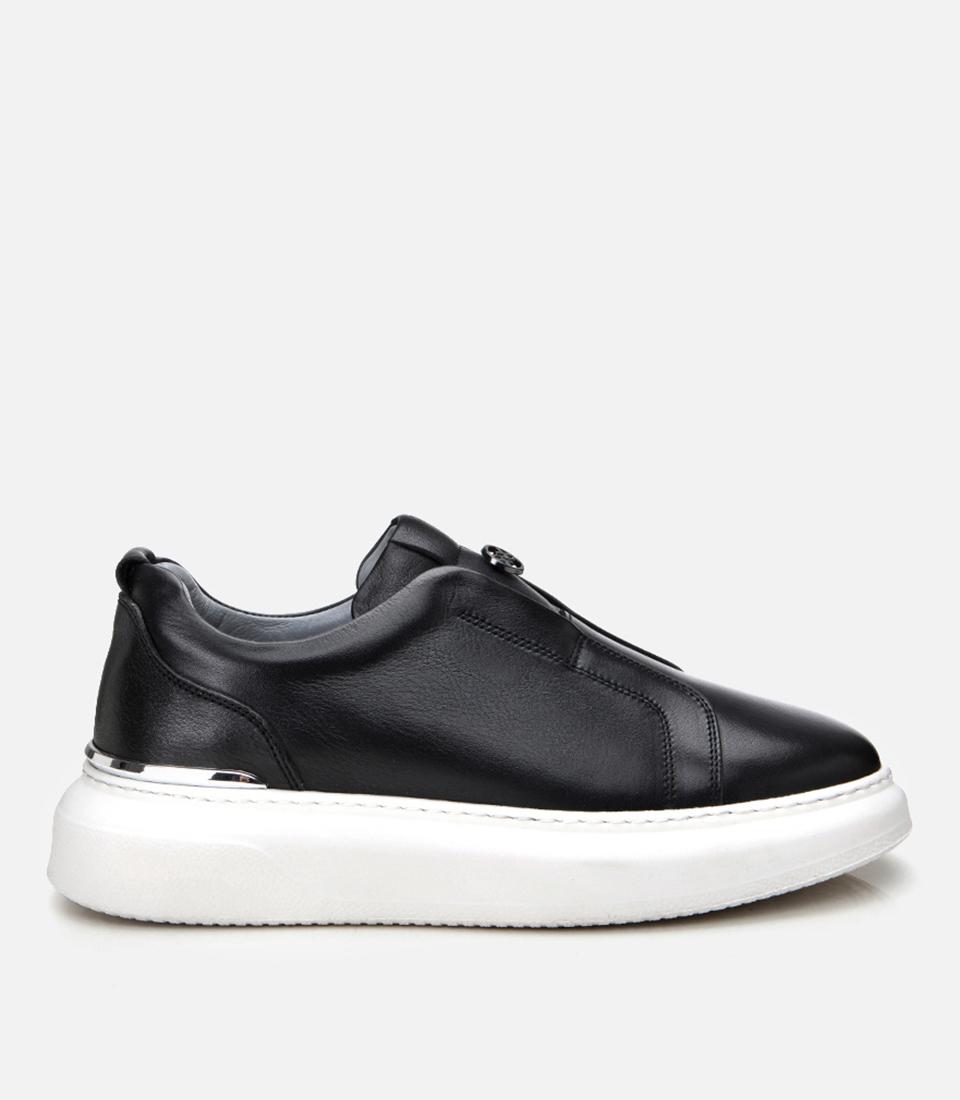 Erkek Deri Siyah Ultra Hafif Tabanlı Comfort Spor Ayakkabı