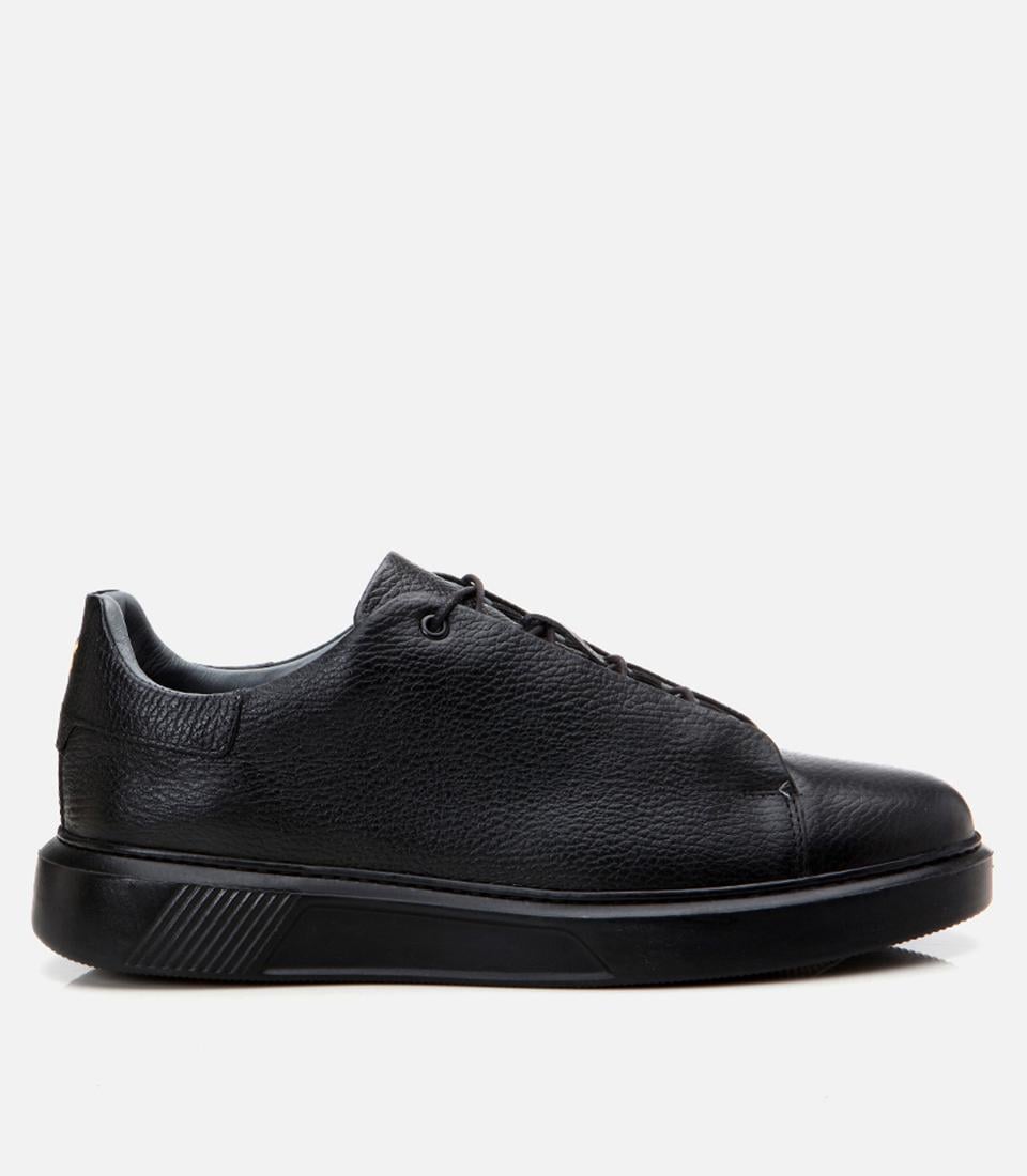 Erkek Deri Siyah Ultra Hafif Tabanlı Spor Ayakkabı