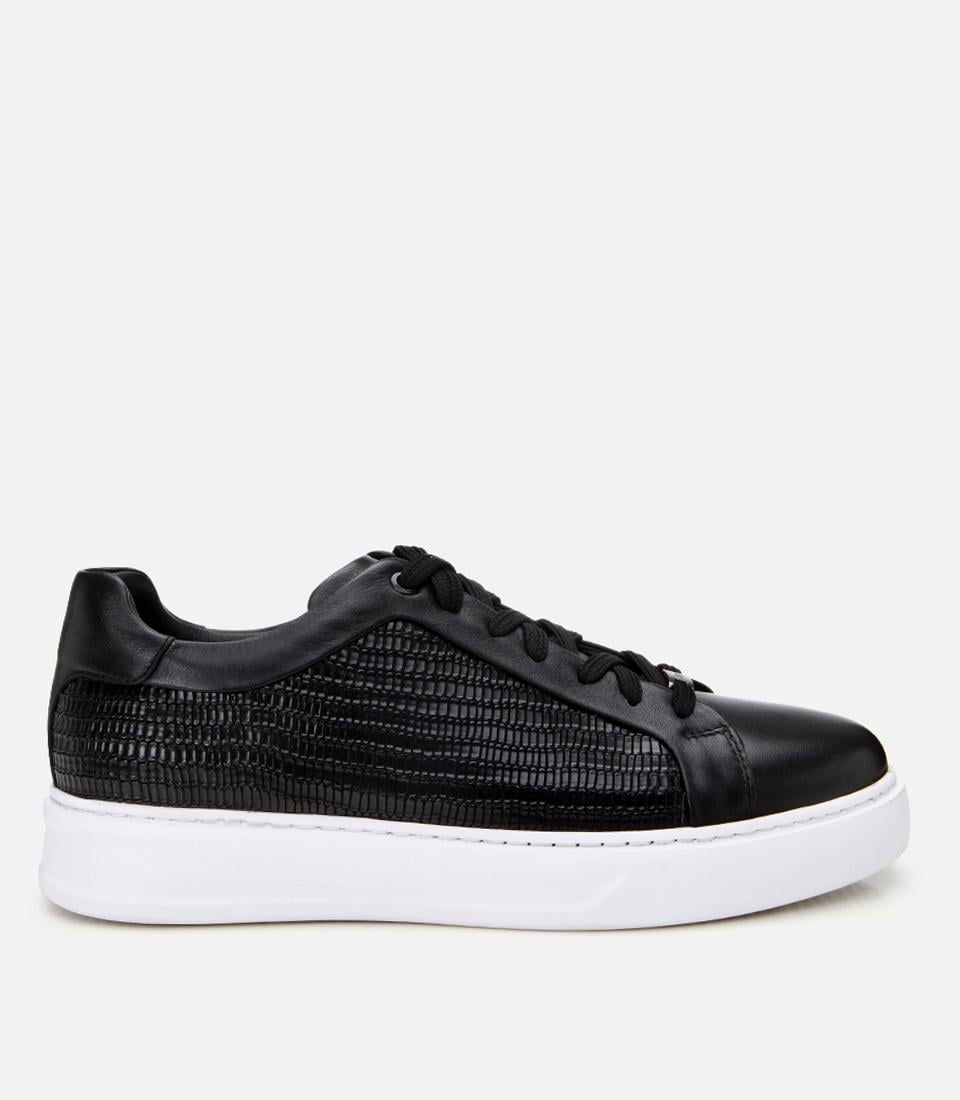 Erkek Deri Siyah Ultra Hafif Tabanlı Spor Ayakkabı