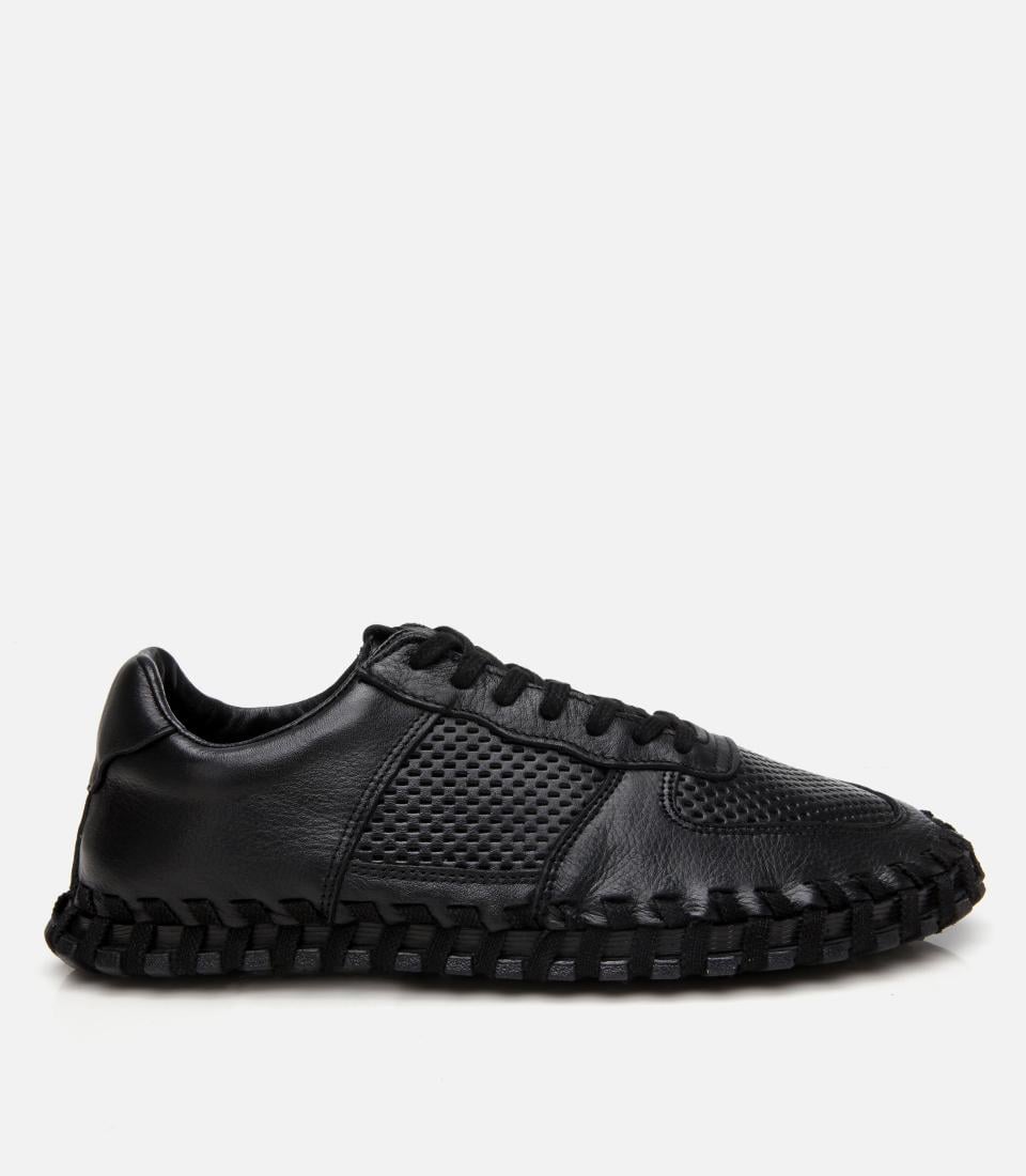 Erkek Deri Siyah Ultra Hafif Tabanlı Spor Ayakkabı