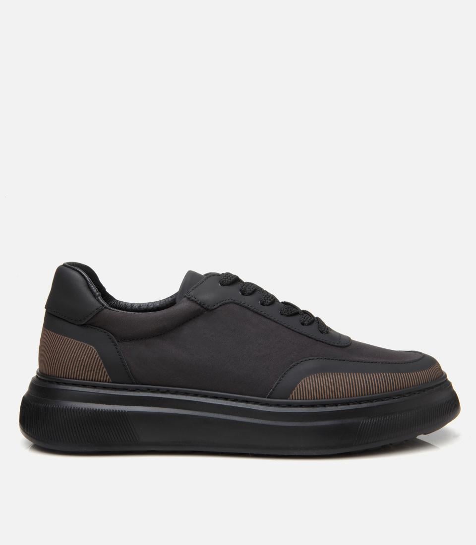 Erkek Deri Siyah Ultra Hafif Tabanlı Spor Ayakkabı