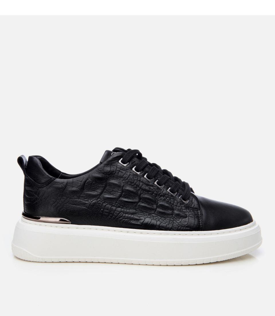 Erkek Deri Siyah Ultra Hafif Tabanlı Spor Ayakkabı