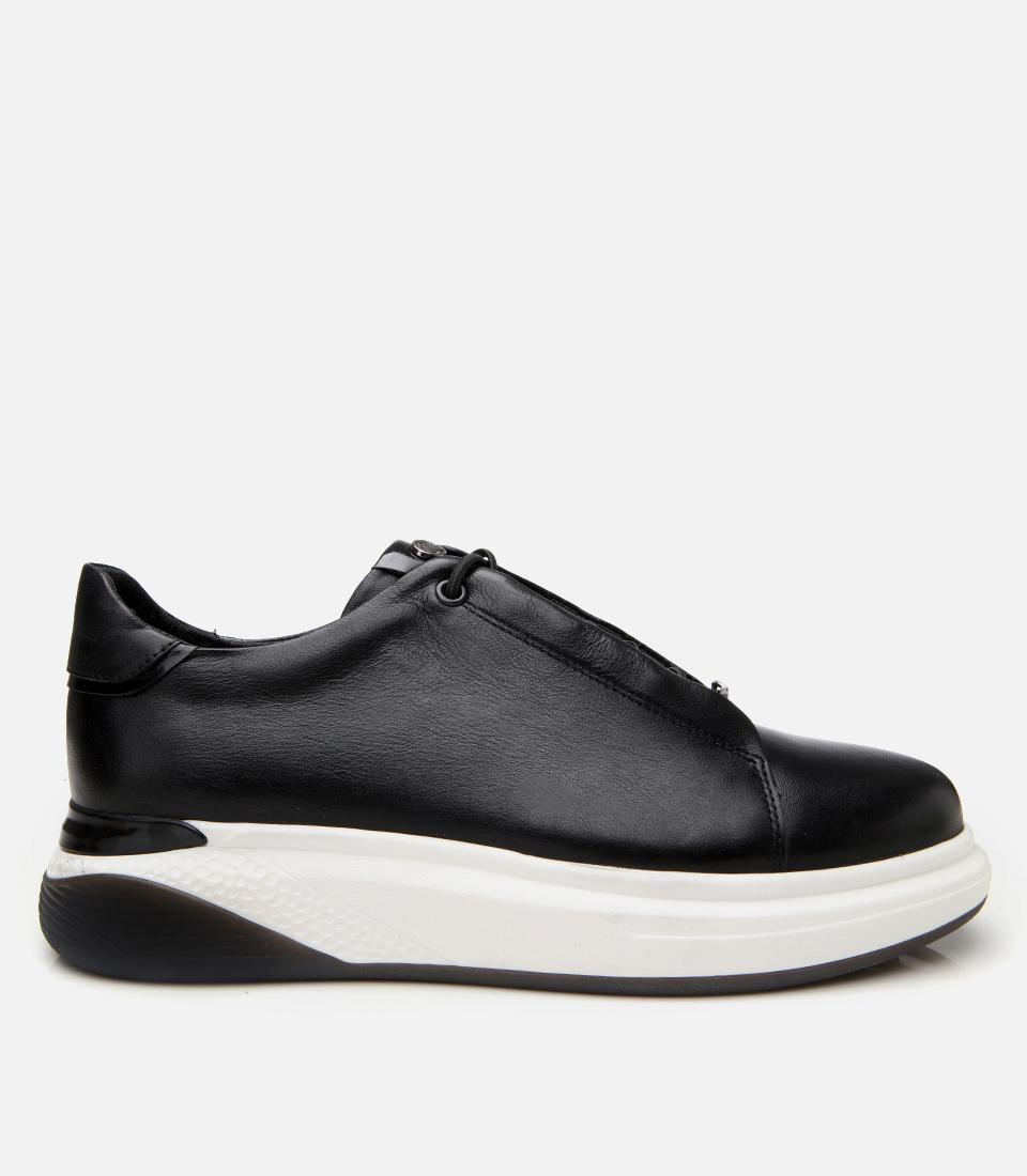 Erkek Deri Siyah Yüksek Tabanlı Spor Ayakkabı
