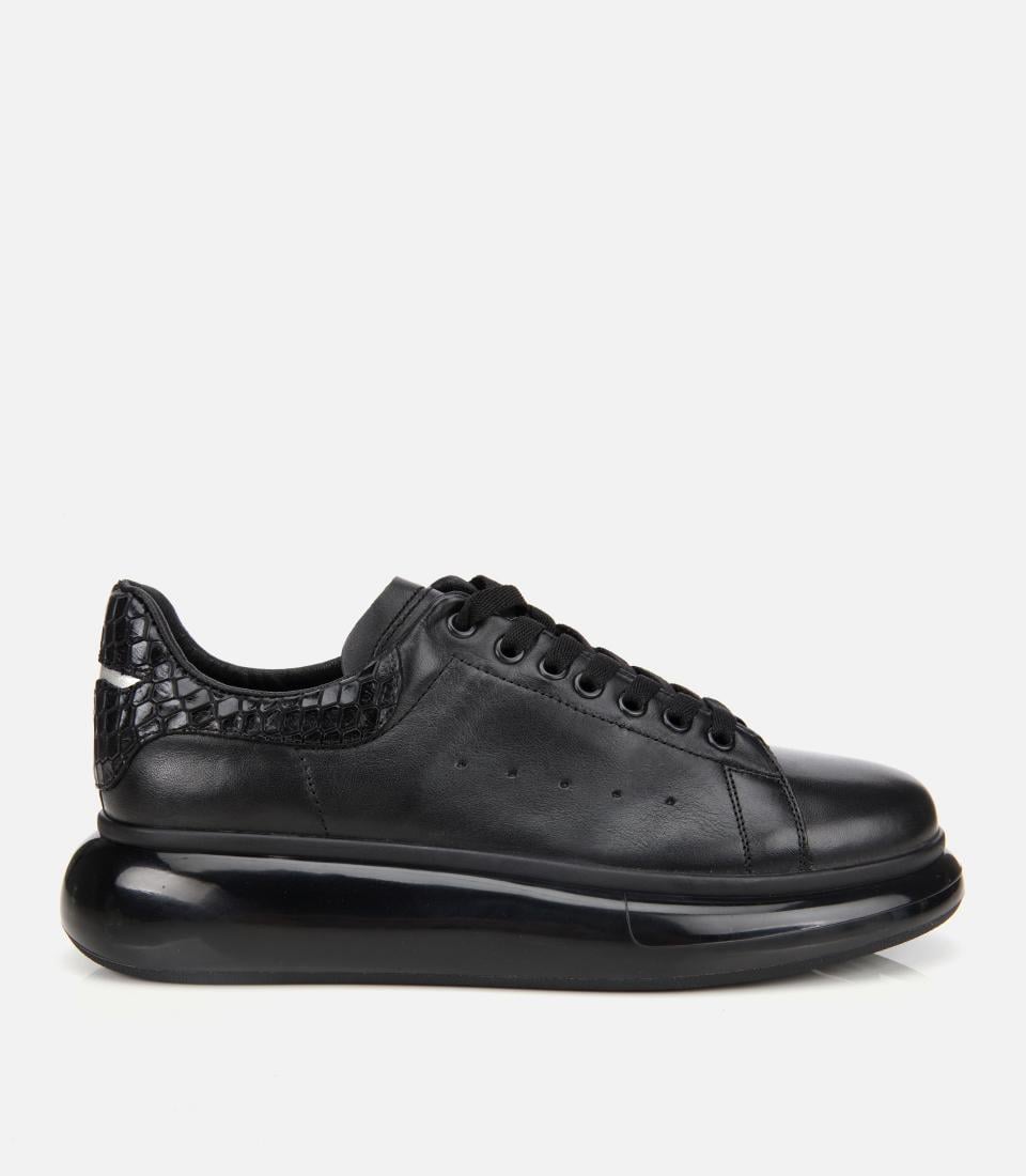 Erkek Deri Siyah Yüksek Tabanlı Spor Ayakkabı