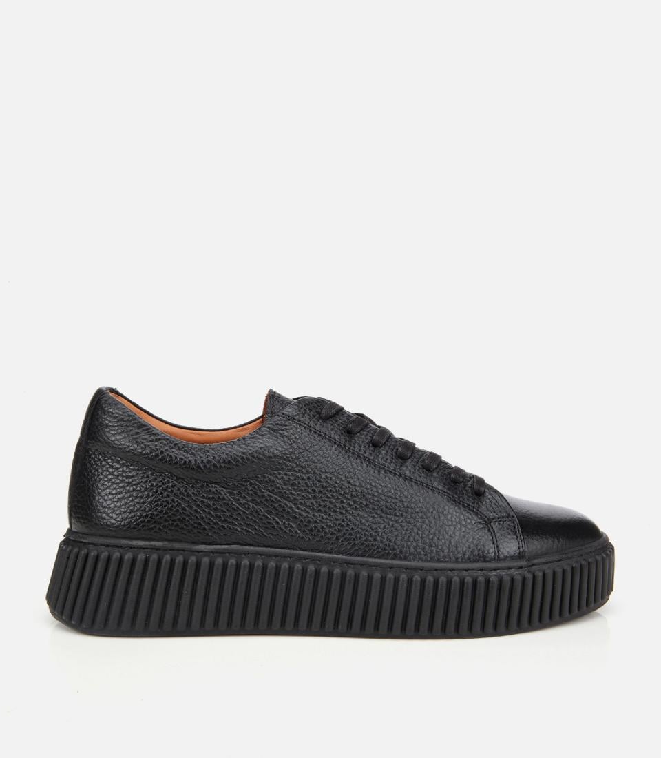 Erkek Deri Siyah Yüksek Tabanlı Spor Ayakkabı