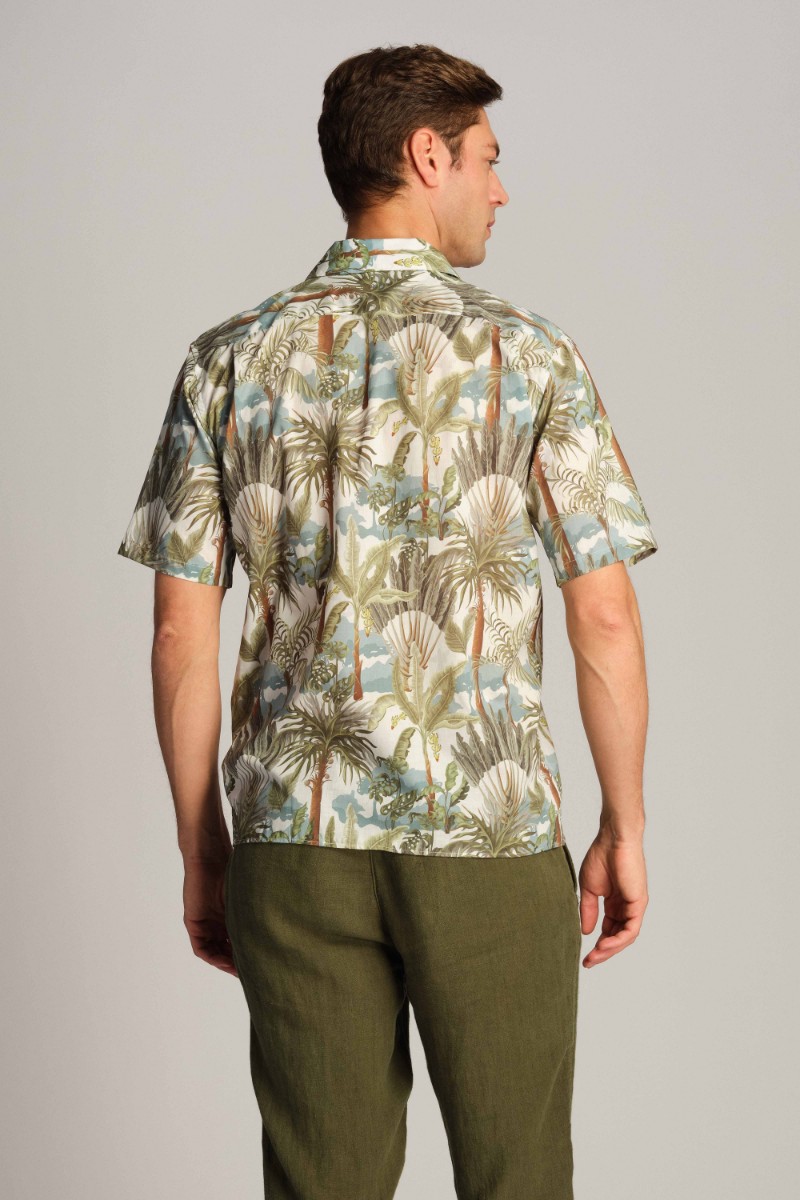 Polo yaka, düğme kapatmalı kısa kollu gömlek. / Fotoğraflardaki model L beden giymektedir.
