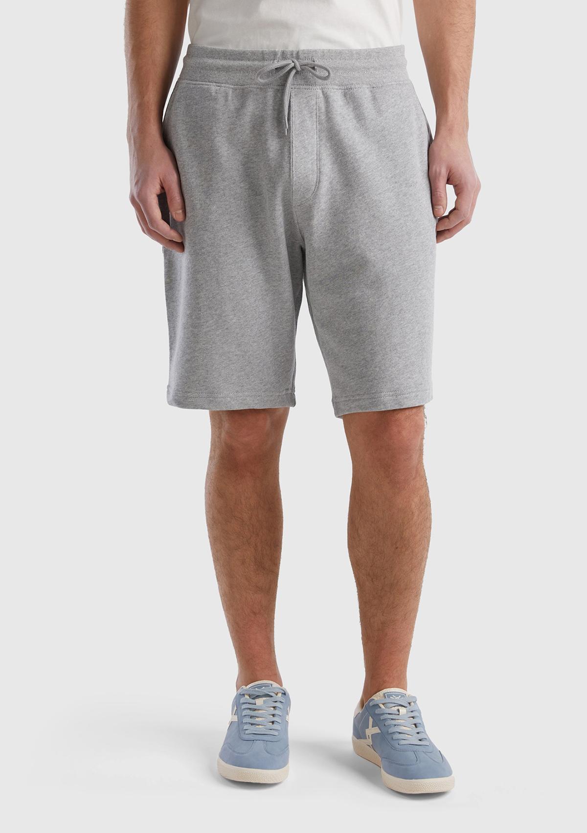 Erkek Gri Melanj %100 Pamuk Logo Detaylı Beli Lastikli Bermuda Şort