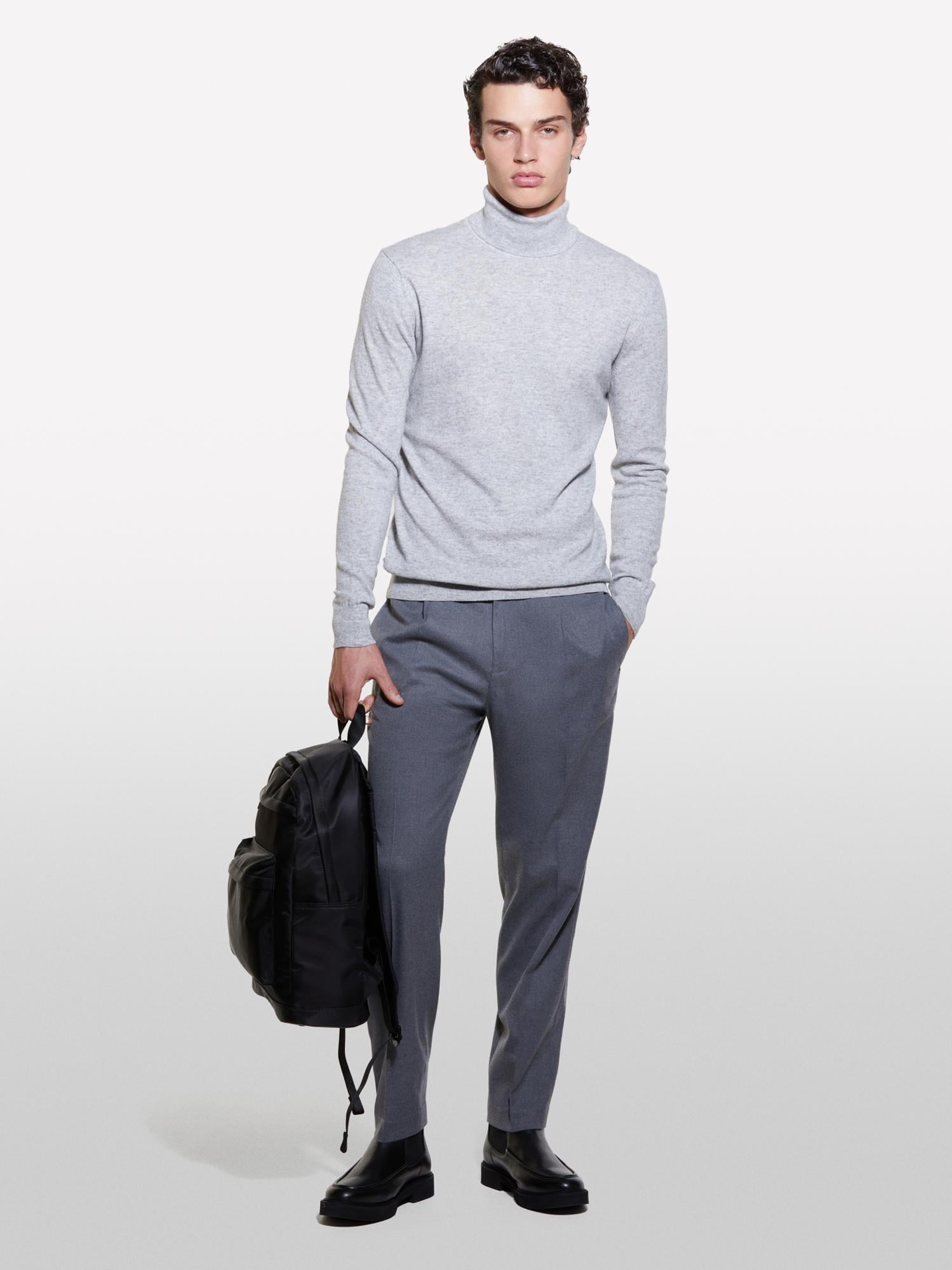 Erkek Gri Melanj Kaşmir Karışımlı Dik Yaka Kazak