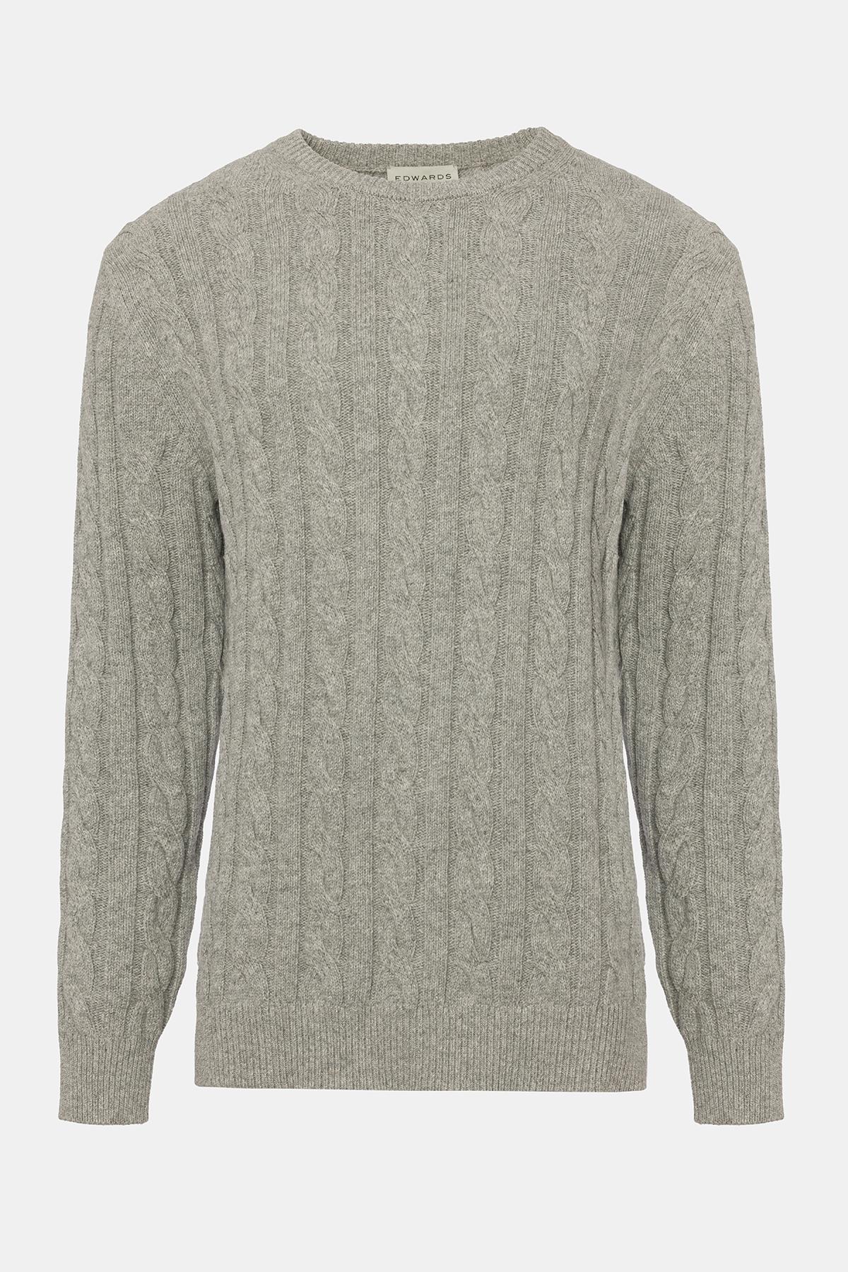 Erkek Gri Melanj Yün Kaşmir Karışımlı Saç Örgülü Kazak