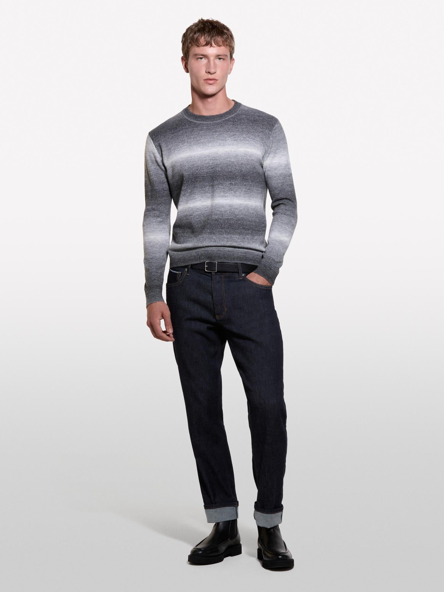 Erkek Gri Mix Yün Karışımlı Renk Geçişli Bisiklet Yaka Kazak