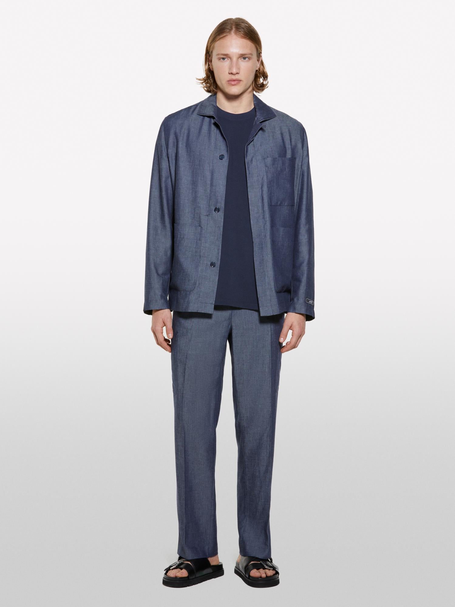 Erkek İndigo Keten Karışımlı Gizli Düğmeli Astarsız Ceket