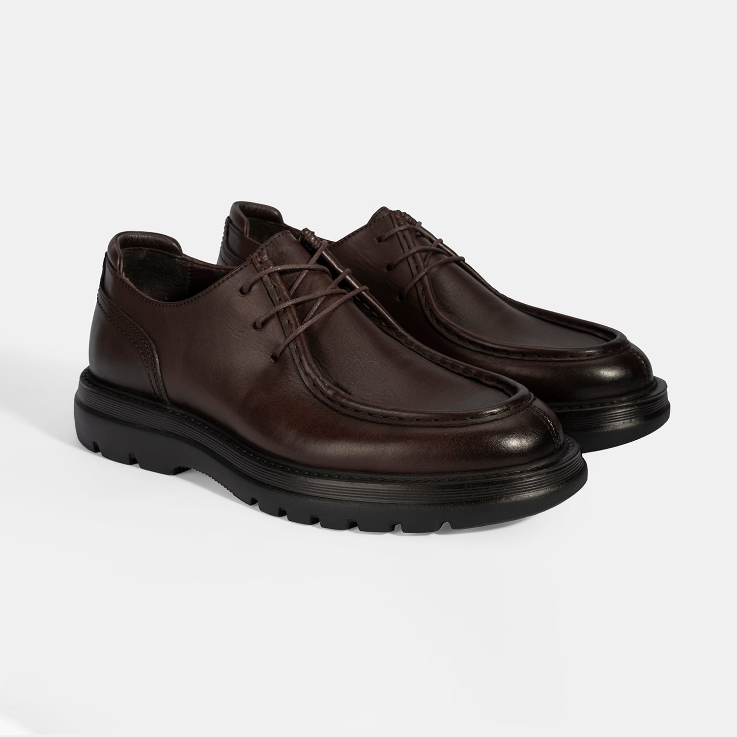 Erkek Kahve Bağcıklı Deri Klasik Ayakkabı