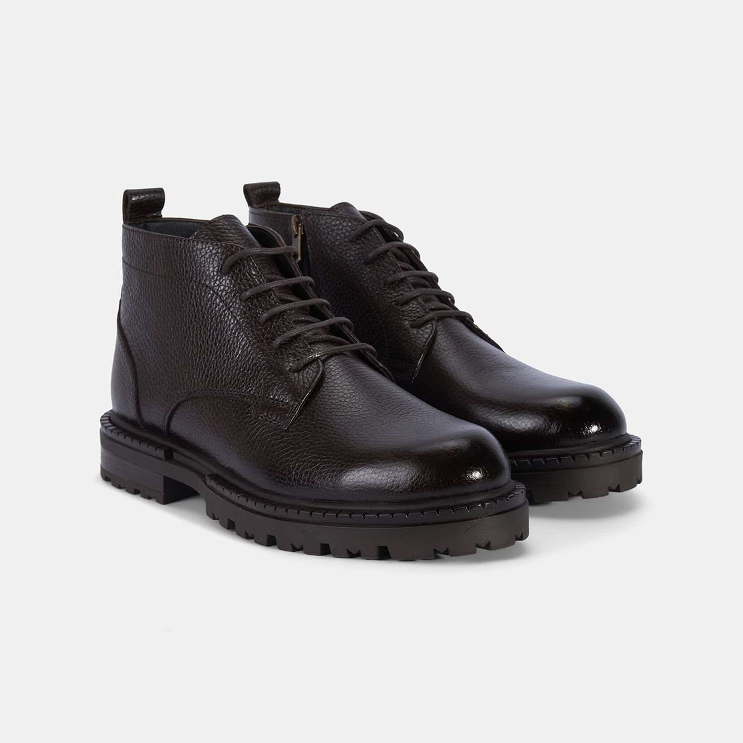 Erkek Kahve Bağcıklı Kalın Tabanlı Deri Postal Bot