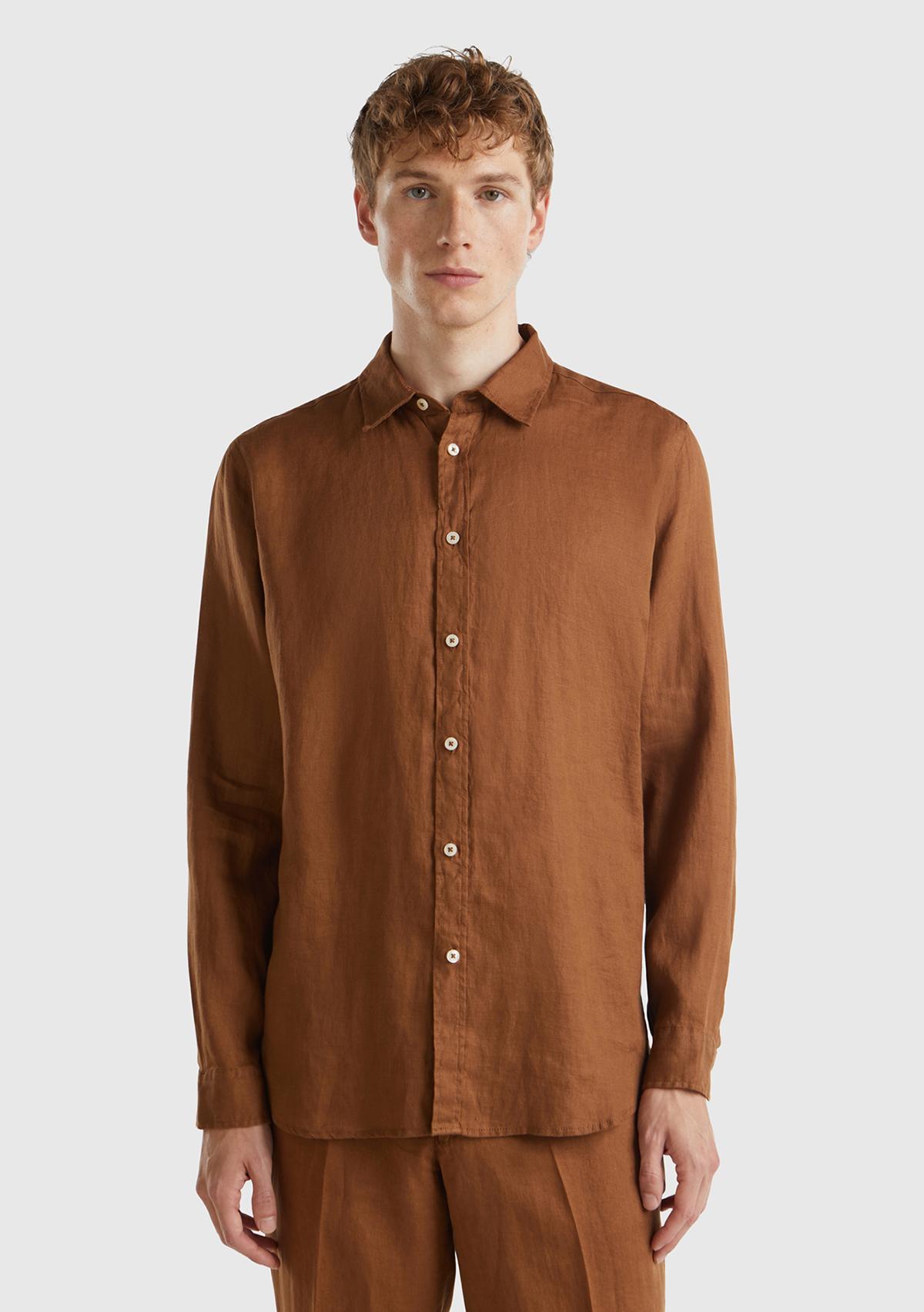Erkek Kahverengi %100 Keten Gömlek