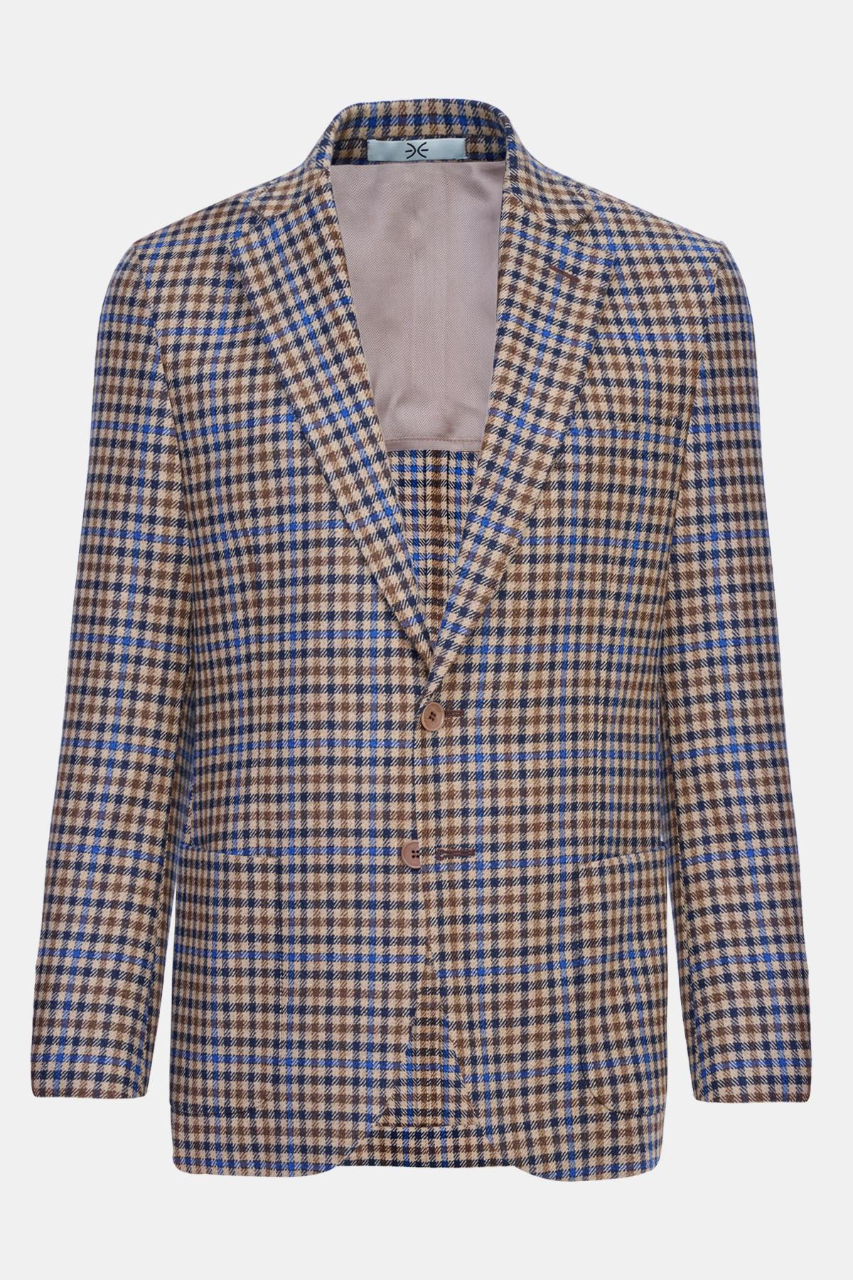Erkek Kahverengi Delfino Kazayağı Desenli Yün Kaşmir Karışımlı Ceket