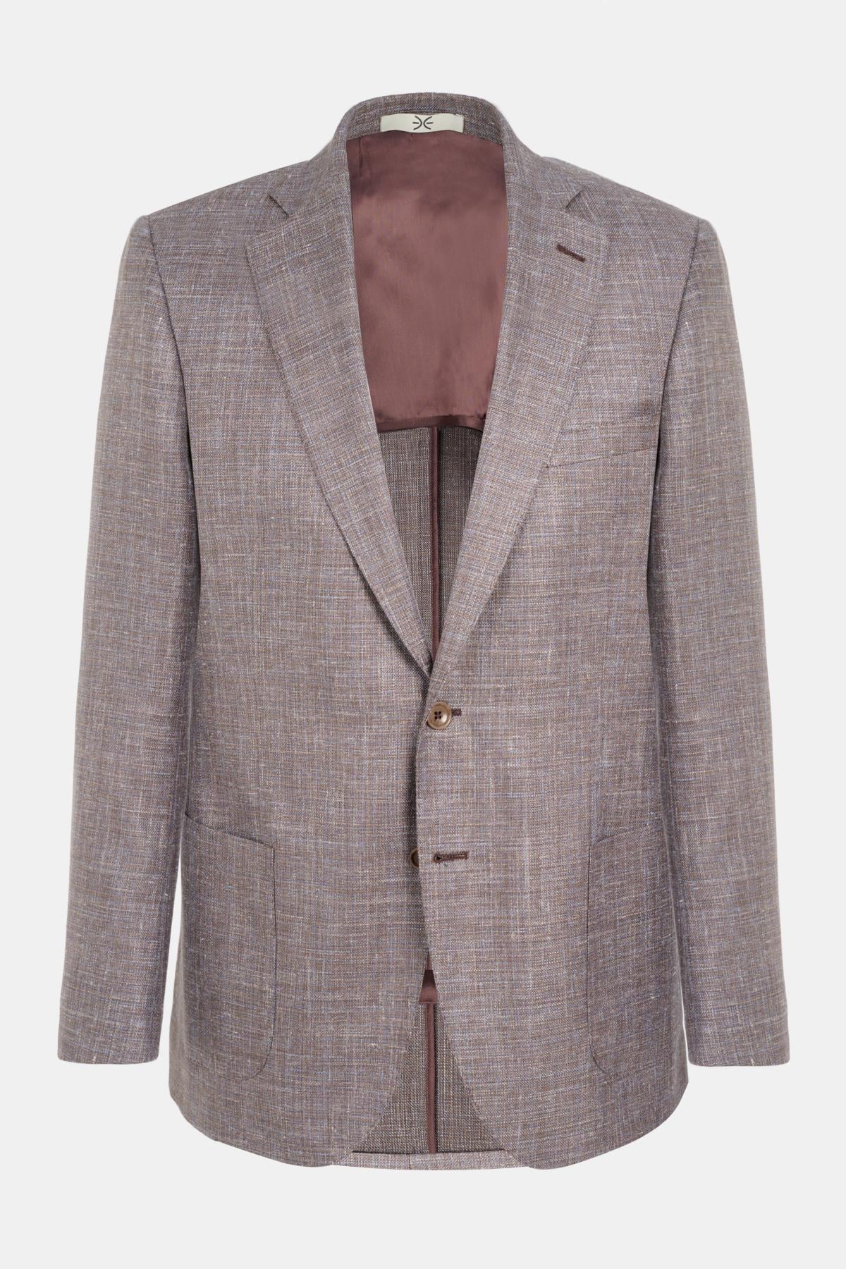 Erkek Kahverengi Loro Piana Kumaşıyla Üretilmiş Yün İpek Keten Karışımlı Ceket