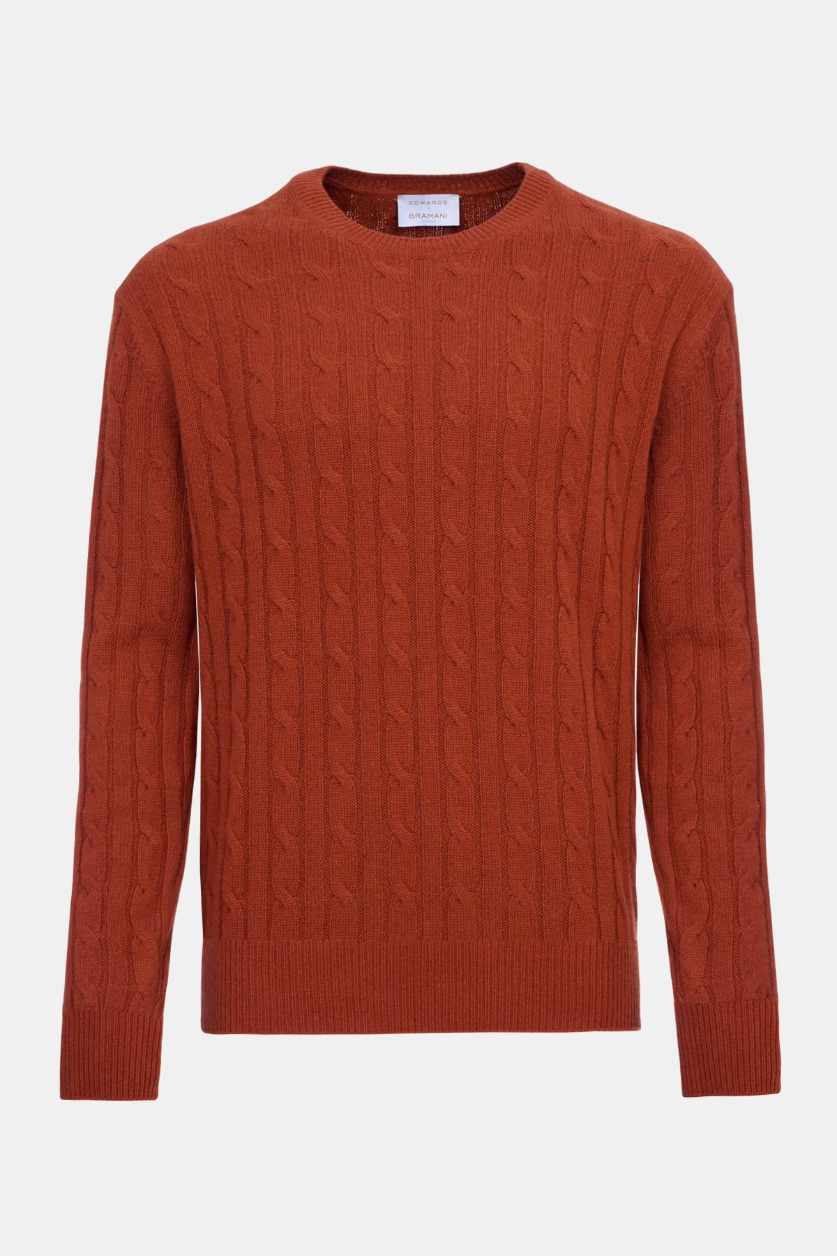 Erkek Kırmızı Bisiklet Yaka Saç Örgülü Kaşmir Kazak