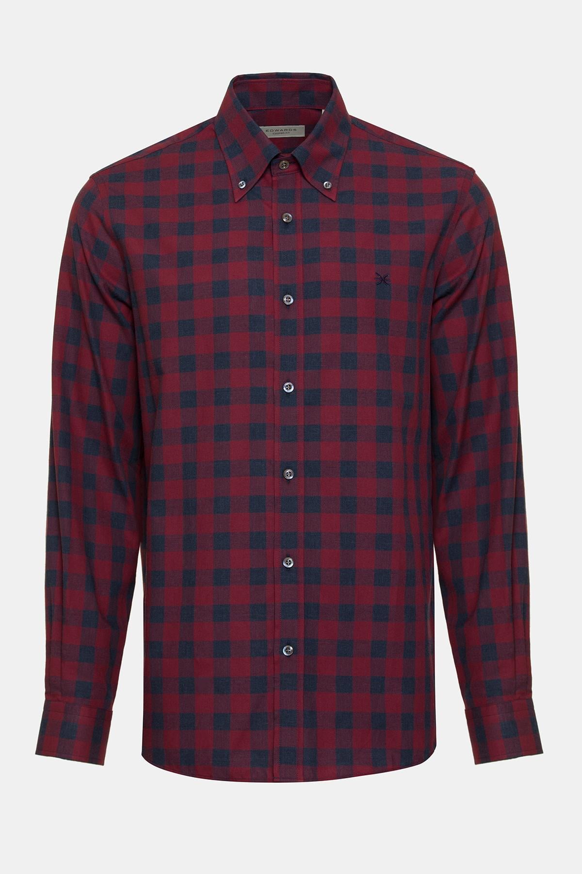Erkek Kırmızı Cooper Fit Düğmeli Yaka Ekoseli Spor Gömlek