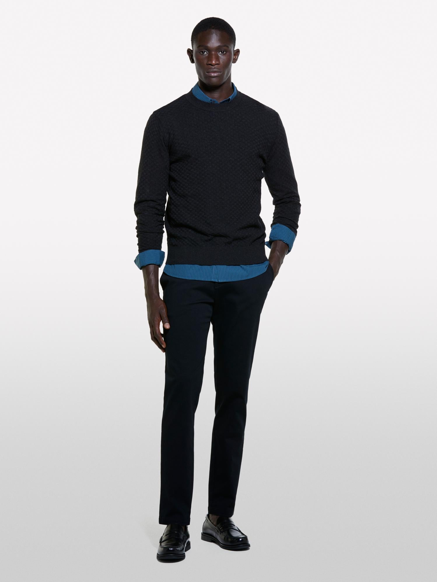 Erkek Koyu Gri Yün Karışımlı Uzun Kollu Ribanalı Kazak