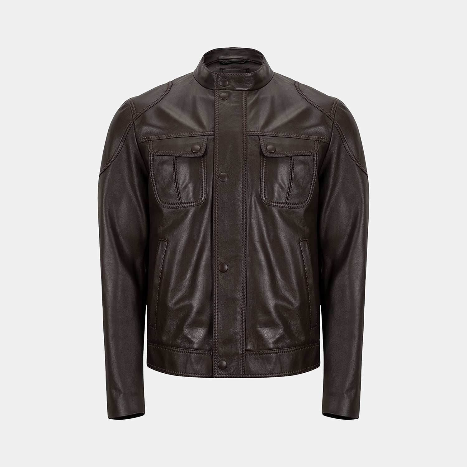 Erkek hakim yakalı rahat kalıp deri ceket. Önden metal gizli fermuar ve metal çıtçıt kapamalıdır. Önde iki adet yandan girişli fleto cebi ve ön üstte iki adet üsten girişli kapaklı torba cebi mevcuttur. İç kısmında düğmeli bir gizli cebi bulunmaktadır. Kol kısmında fermuar detayı bulunur. Spor dikişleri bulunur. Omuz kısmında dekoratif parçalama mevcuttur. %100 koyun derisi olup, astarlı çalışılmıştır.-Erkek hakim yakalı rahat kalıp deri ceket. Önden metal gizli fermuar ve metal çıtçıt kapamalıdır. Önde iki adet yandan girişli fleto cebi ve ön üstte iki adet üsten girişli kapaklı torba cebi mevcuttur. İç kısmında düğmeli bir gizli cebi bulunmaktadır. Kol kısmında fermuar detayı bulunur. Spor dikişleri bulunur. Omuz kısmında dekoratif parçalama mevcuttur. %100 koyun derisi olup, astarlı çalışılmıştır.