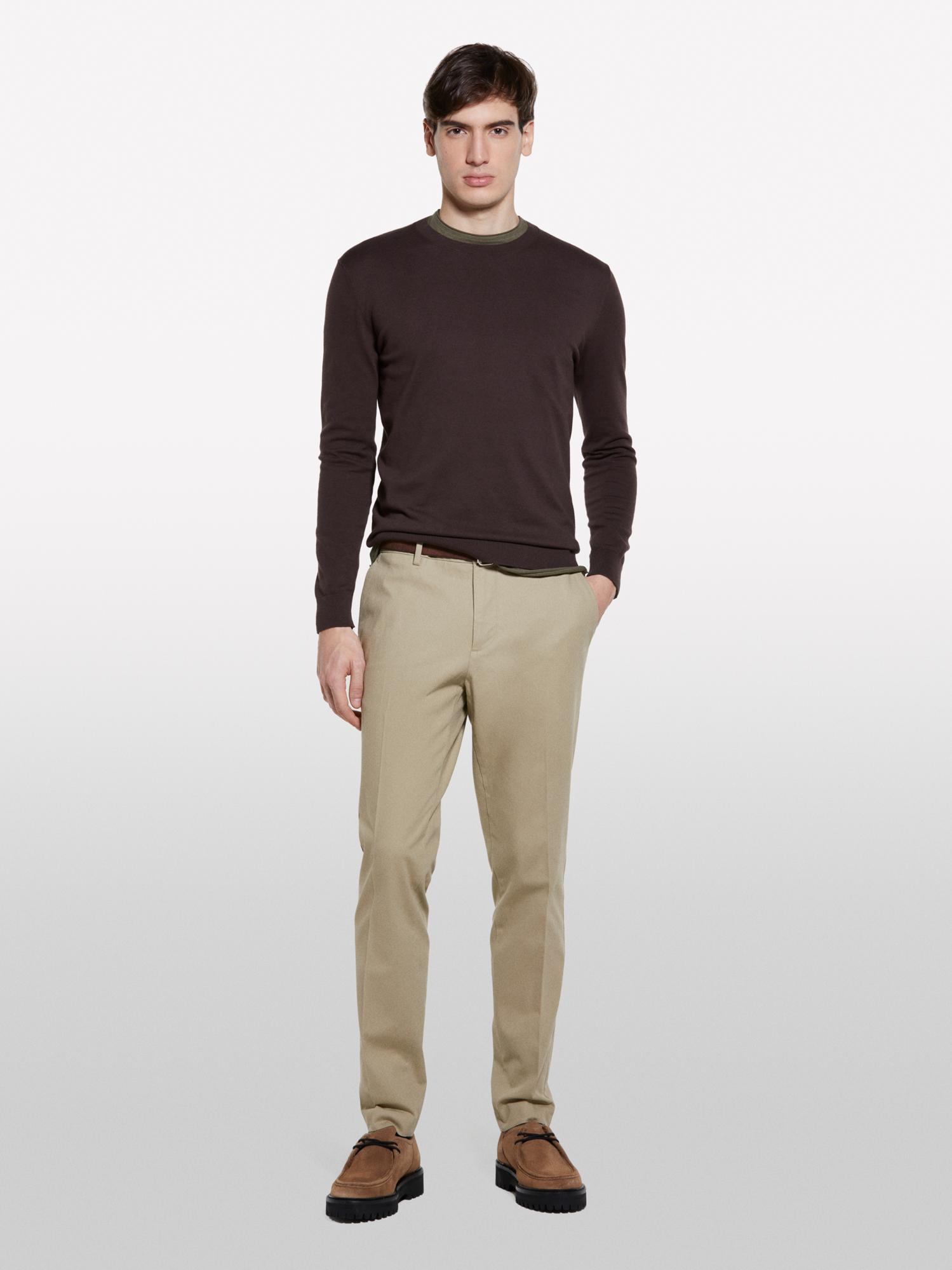 Erkek Koyu kahverengi Pamuk Karışımlı Normal Kesim Uzun Kollu Ribanalı Kazak
