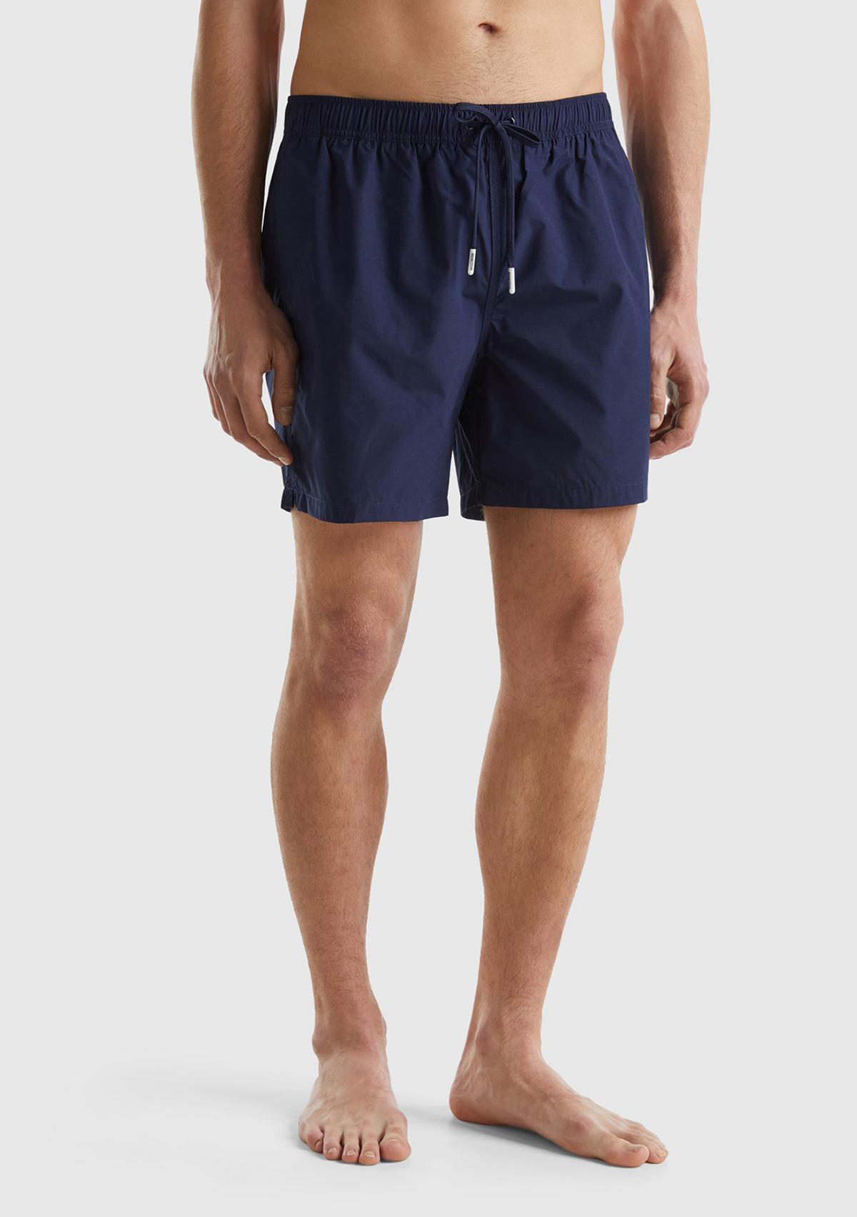 "item_name": "Erkek Koyu Lacivert Önü Logo İşlemeli Yama Cepli Beli Büzgülü Deniz Şortu",