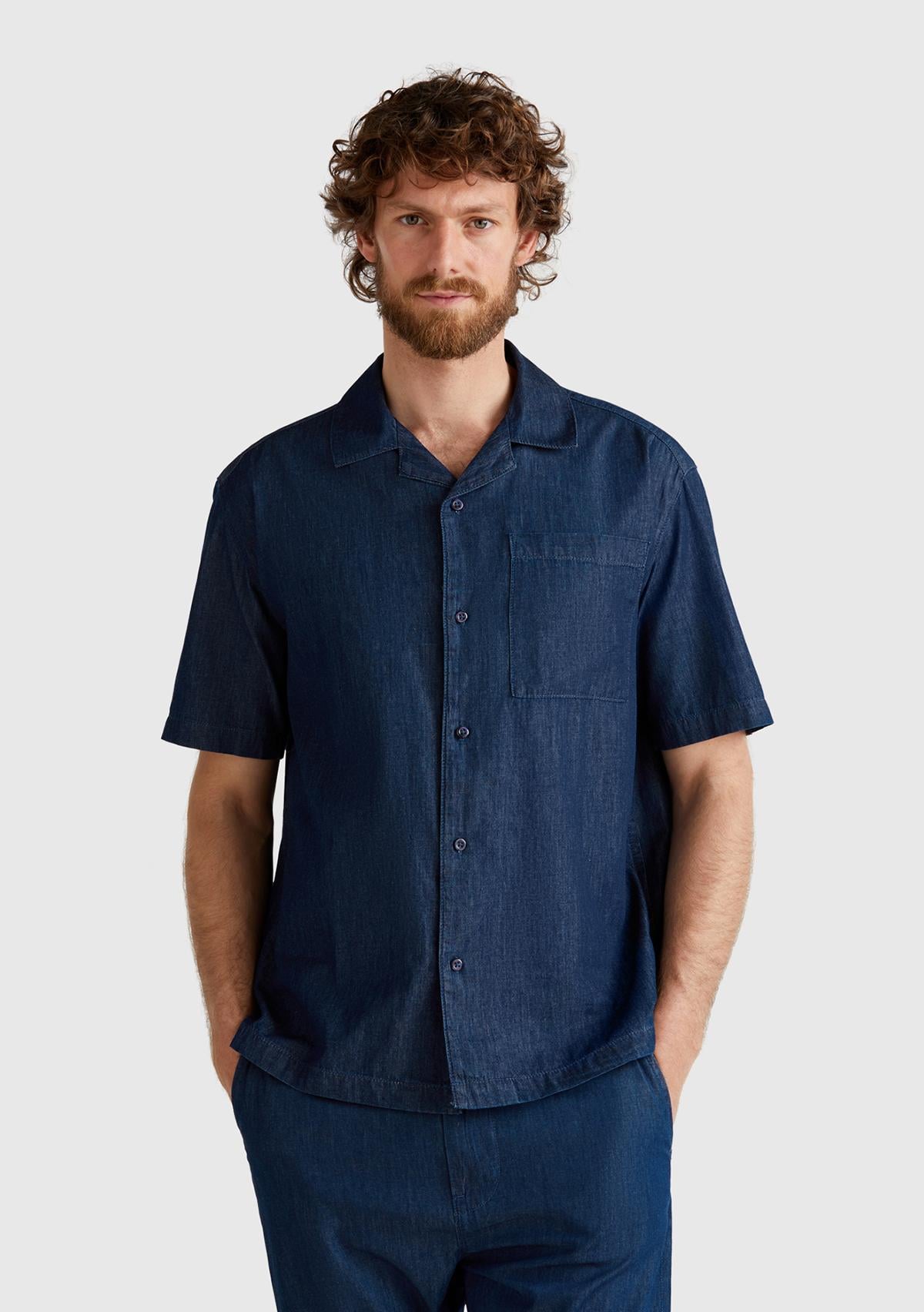 "name": "Erkek Koyu Mavi %100 Koton Kısa Kollu Kamp Yaka Gömlek",