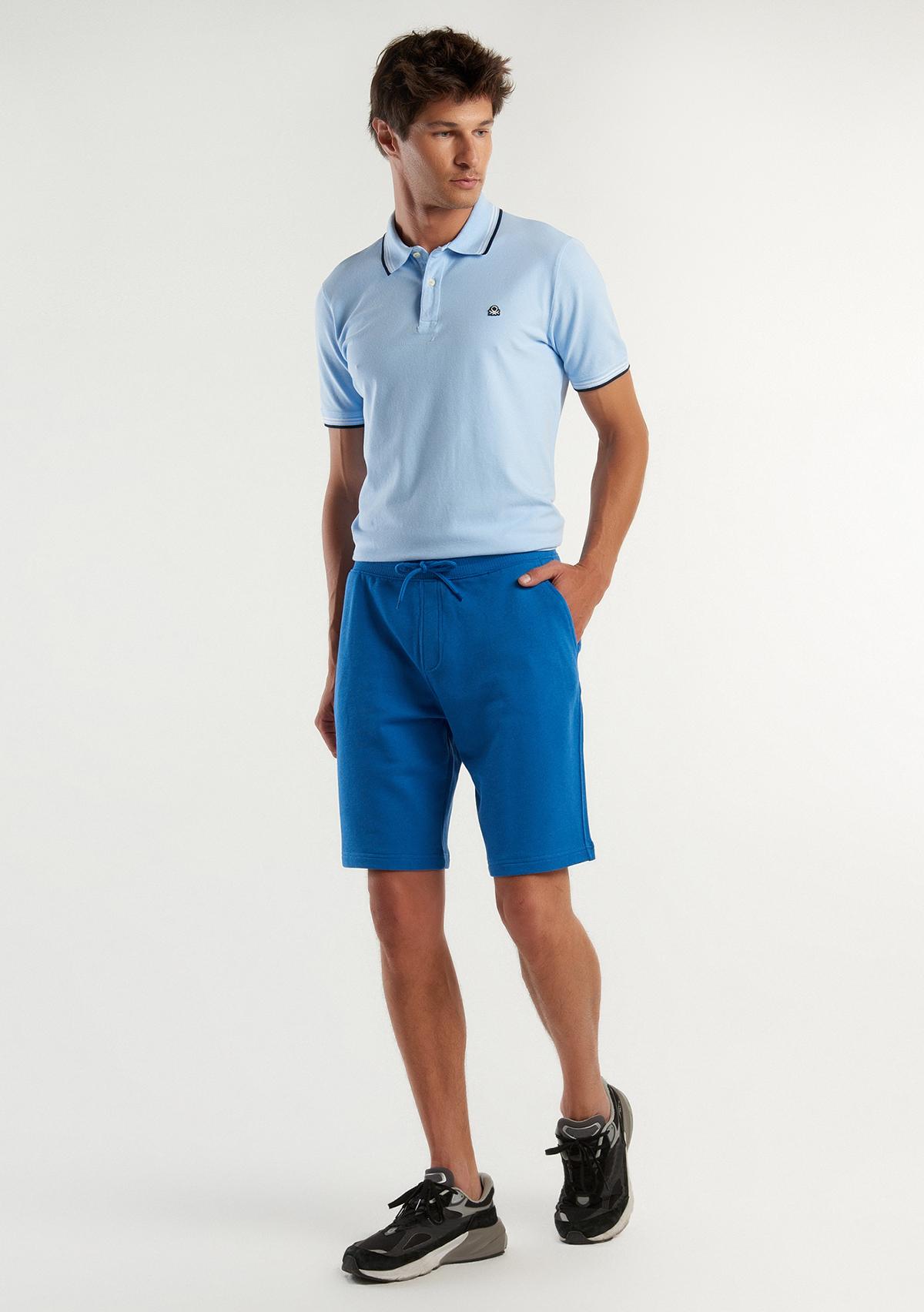 Erkek Koyu Mavi %100 Pamuk Logo Detaylı Beli Lastikli Bermuda Şort