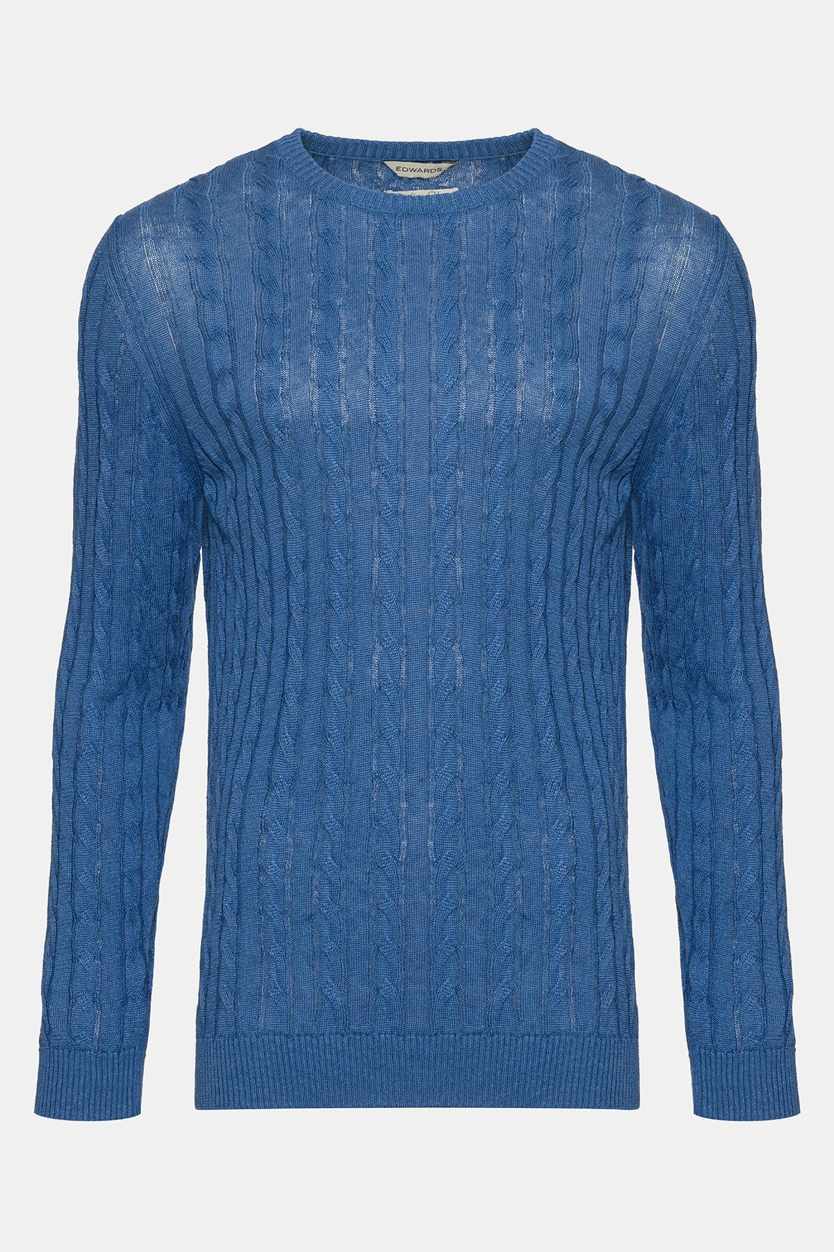 Erkek Koyu Mavi Saç Örgülü Bisiklet Yaka Keten Kazak