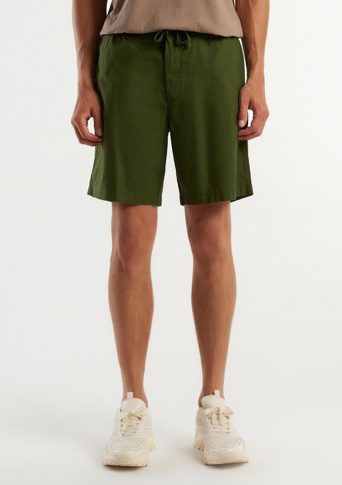 Erkek Koyu Yeşil %100 Pamuk 4 Cepli Beli Büzgülü İpli Kısa Şort