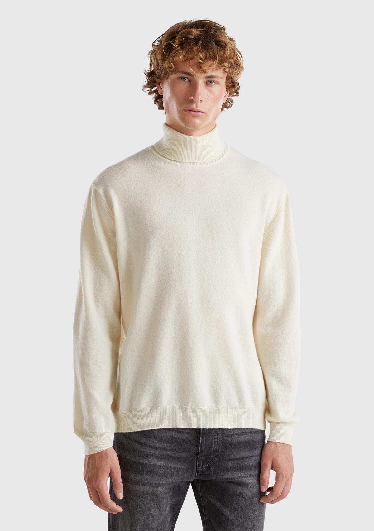 Erkek Krem Boğazlı %100 Merino Kazak. Koyun Yünü İçerir
