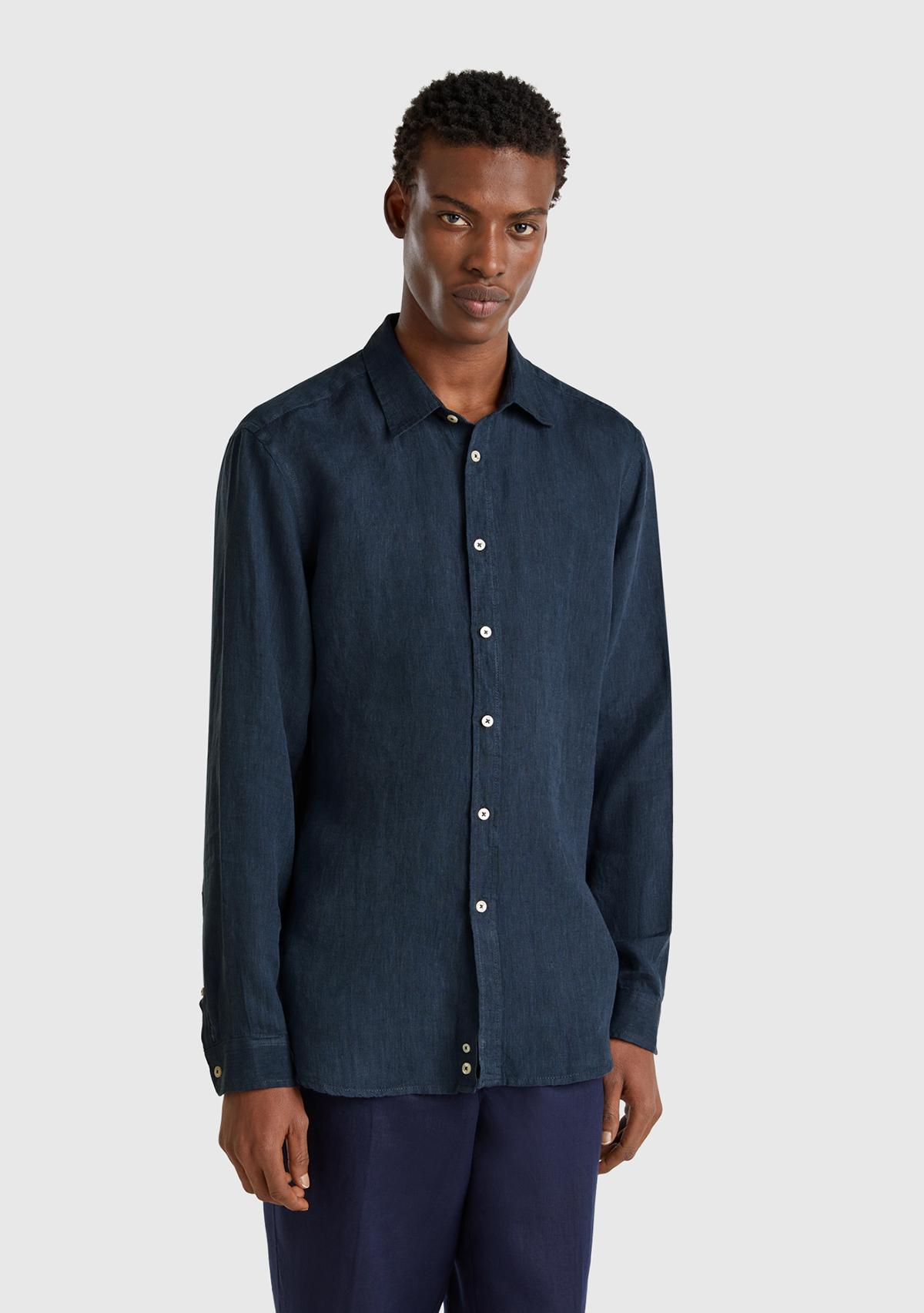Erkek Lacivert %100 Keten Gömlek