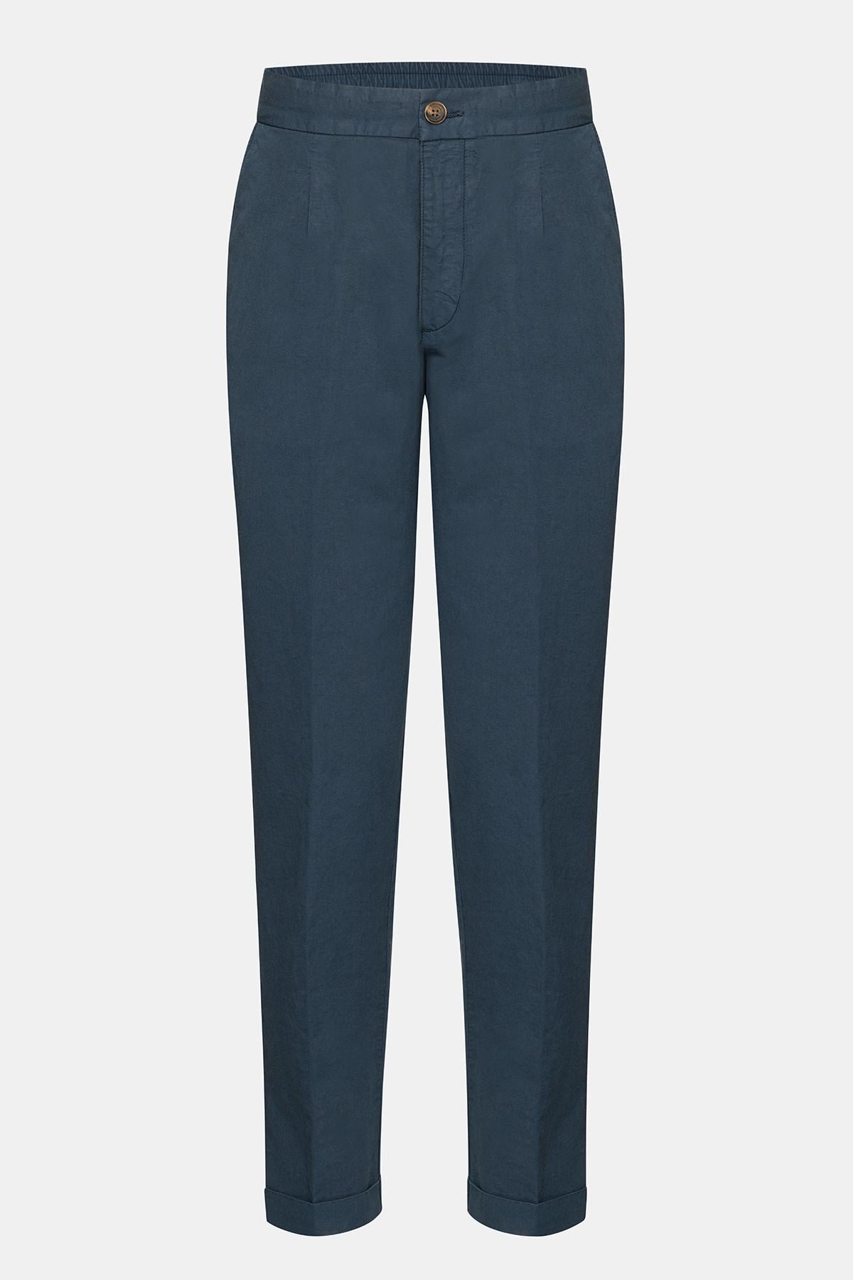 Erkek Lacivert Beli Lastikli Bağcıklı Keten Pantolon