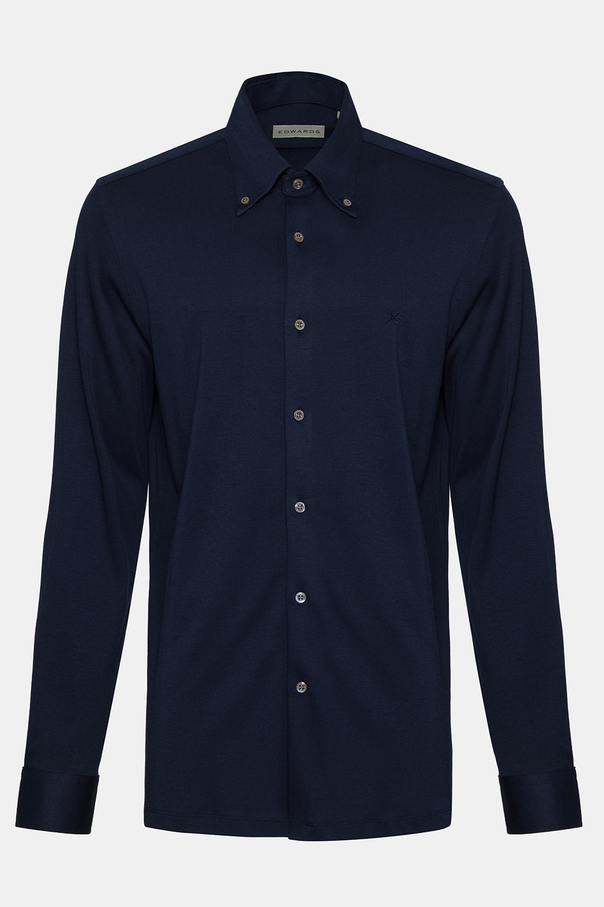 Erkek Lacivert Cooper Fit Düğmeli Yaka İnterlock Gömlek
