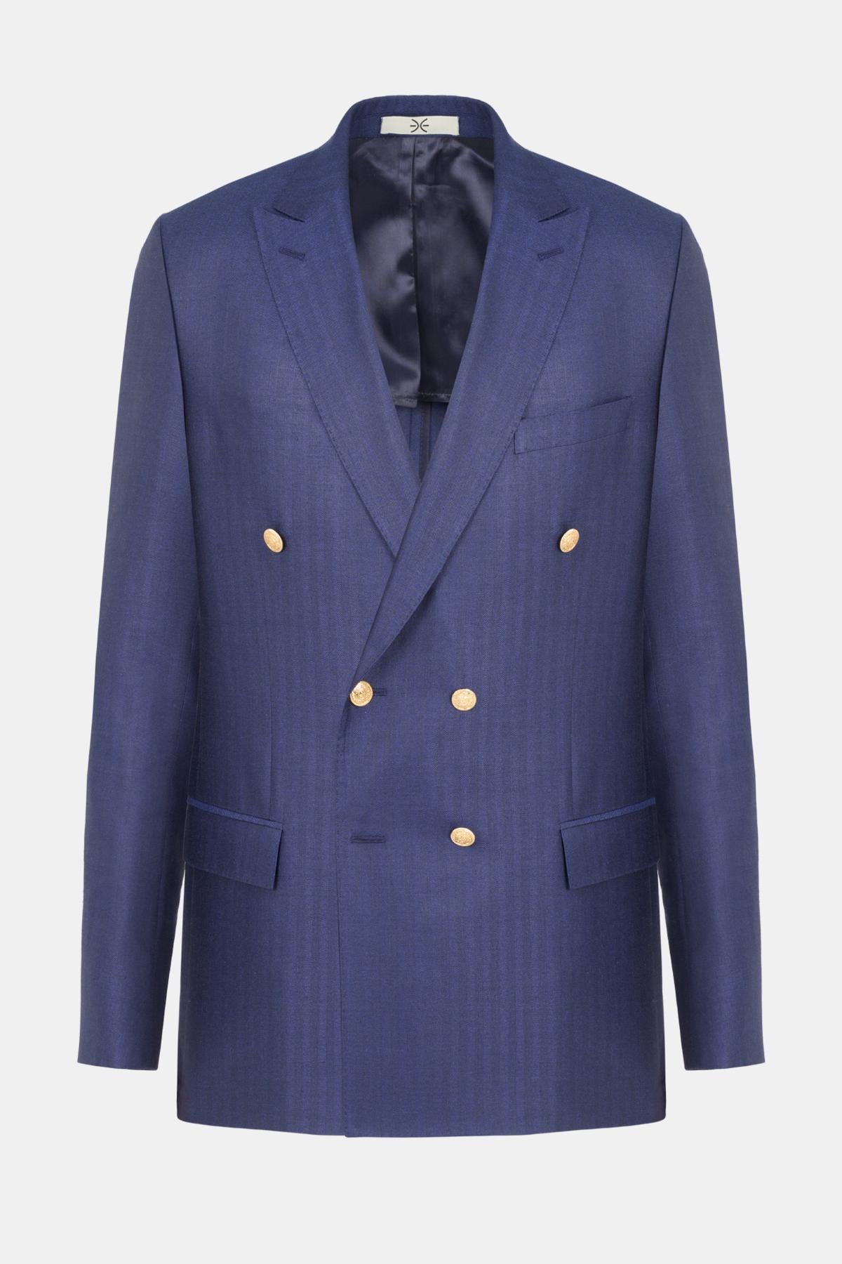 Erkek Lacivert Loro Piana Kumaşıyla Üretilmiş Yün İpek Keten Karışımlı Kruvaze Ceket