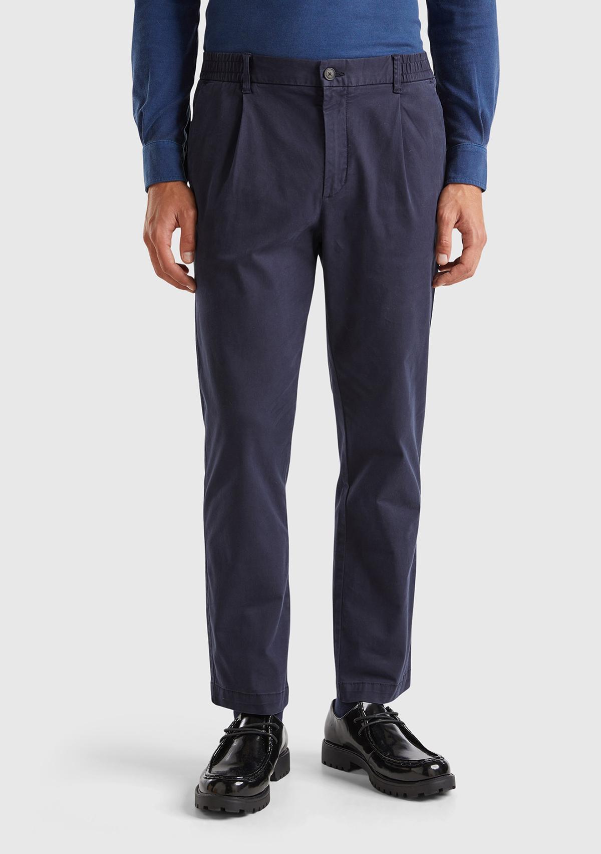 Erkek Lacivert Pamuk Karışımlı Yanları ve Arkası Cep Detaylı Pantolon