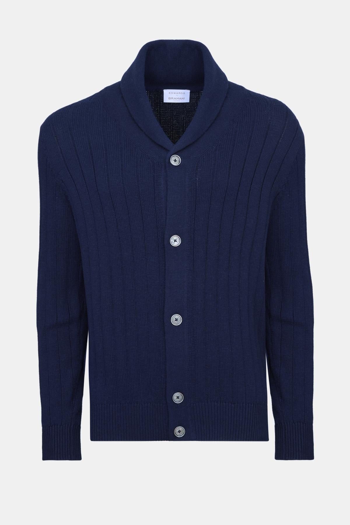 Erkek Lacivert Pamuk Kaşmir Karışımlı Şal Yaka Düğmeli Hırka