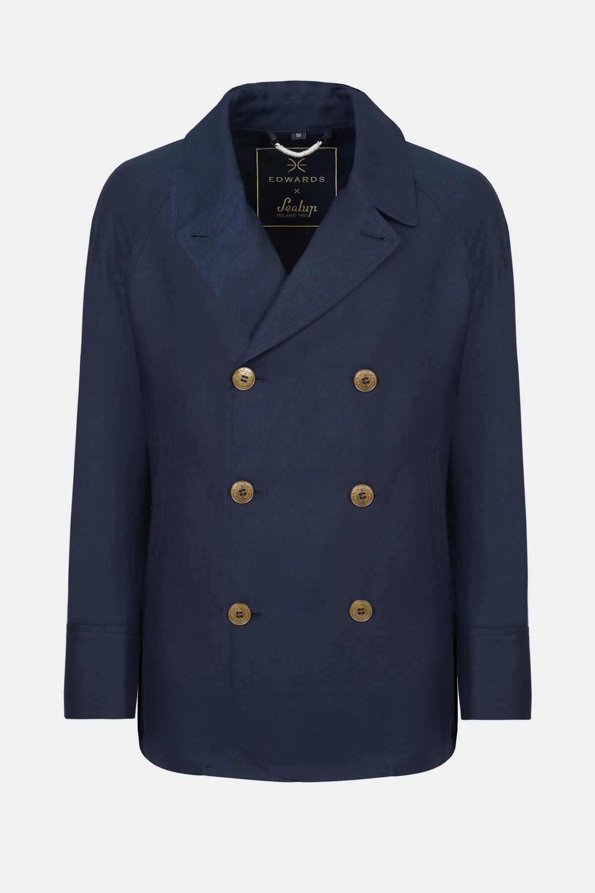 Erkek Lacivert Pamuk Keten Karışımlı Kruvaze Ceket
