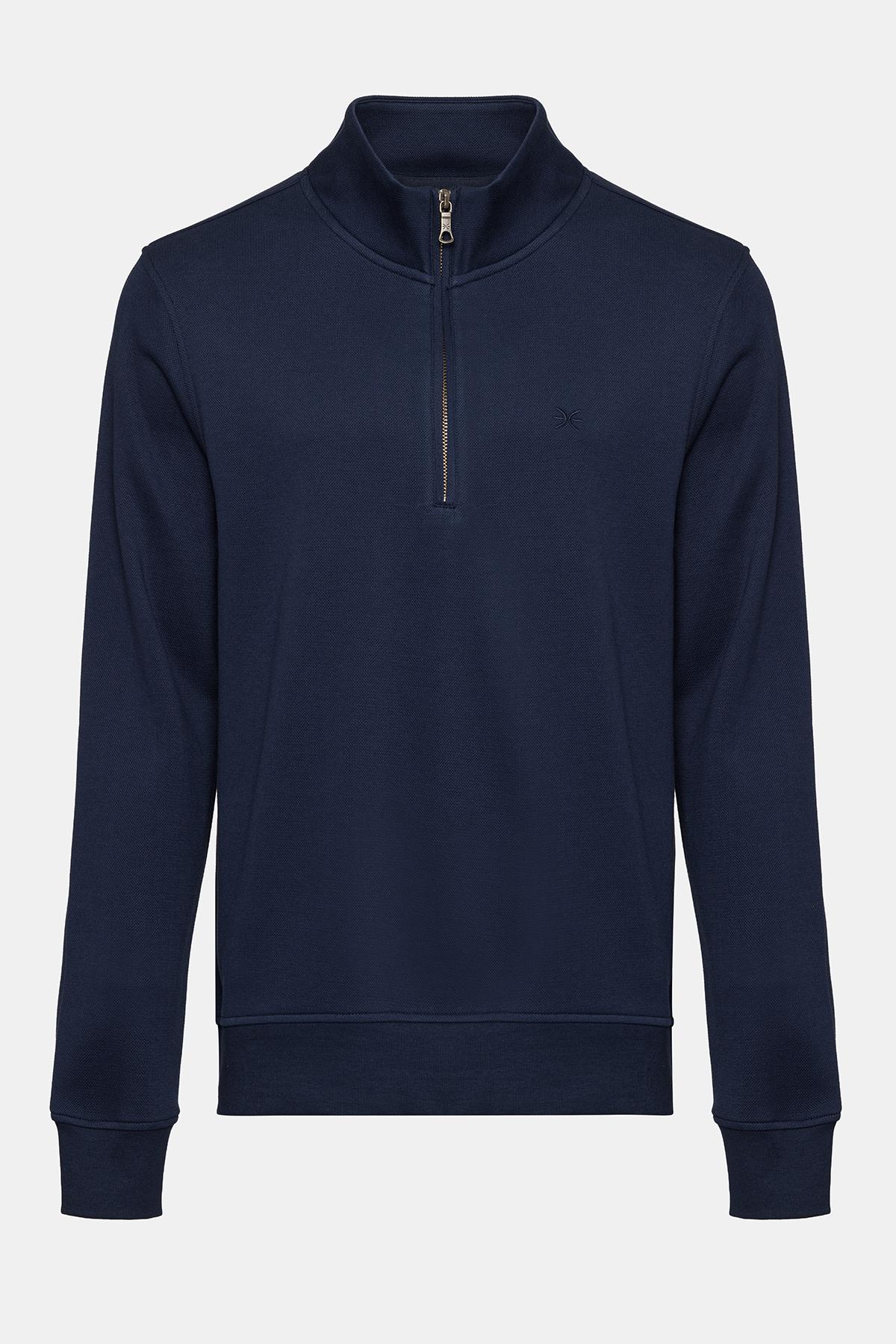Erkek Lacivert Yarım Fermuarlı Organik Pamuklu Sweatshirt