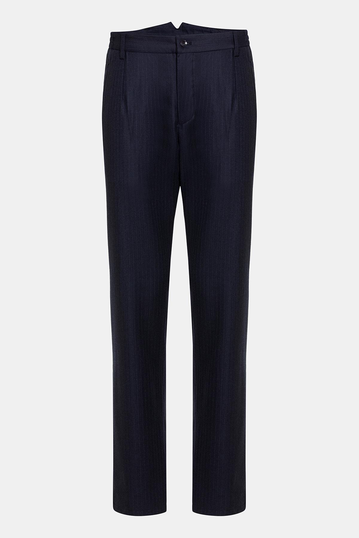 Erkek Lacivert Yün Çizgili Beli Lastikli Del Casentino Pantolon