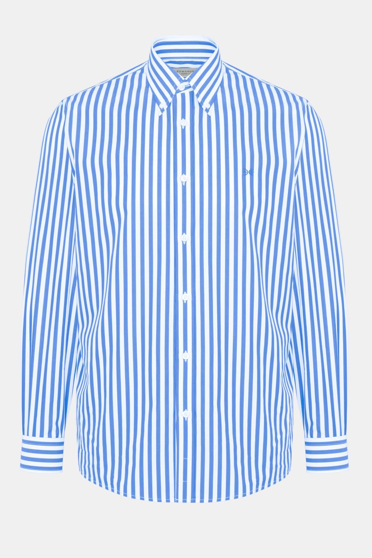 Erkek Mavi Cooper Fit Düğmeli Yaka Çizgili Spor Gömlek
