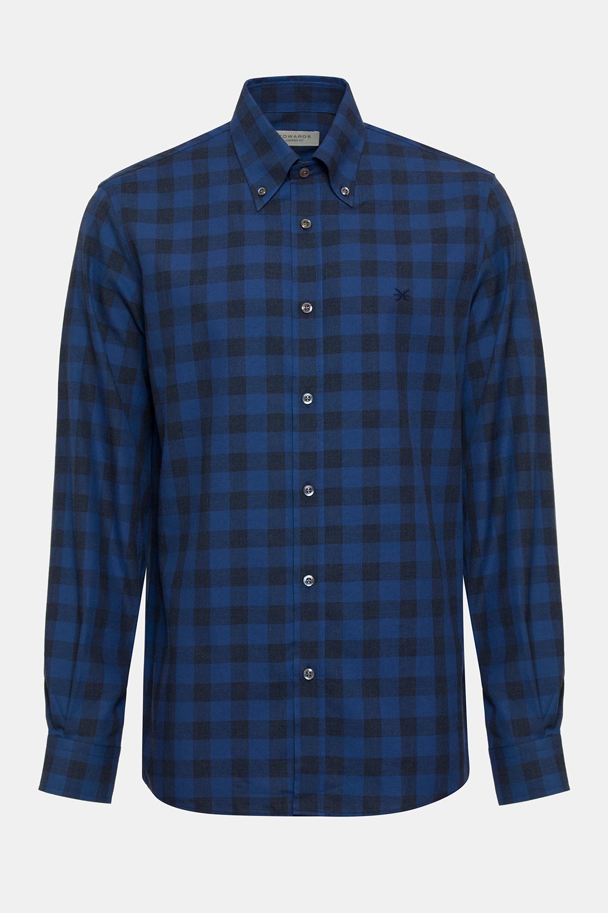 Erkek Mavi Cooper Fit Düğmeli Yaka Ekoseli Spor Gömlek