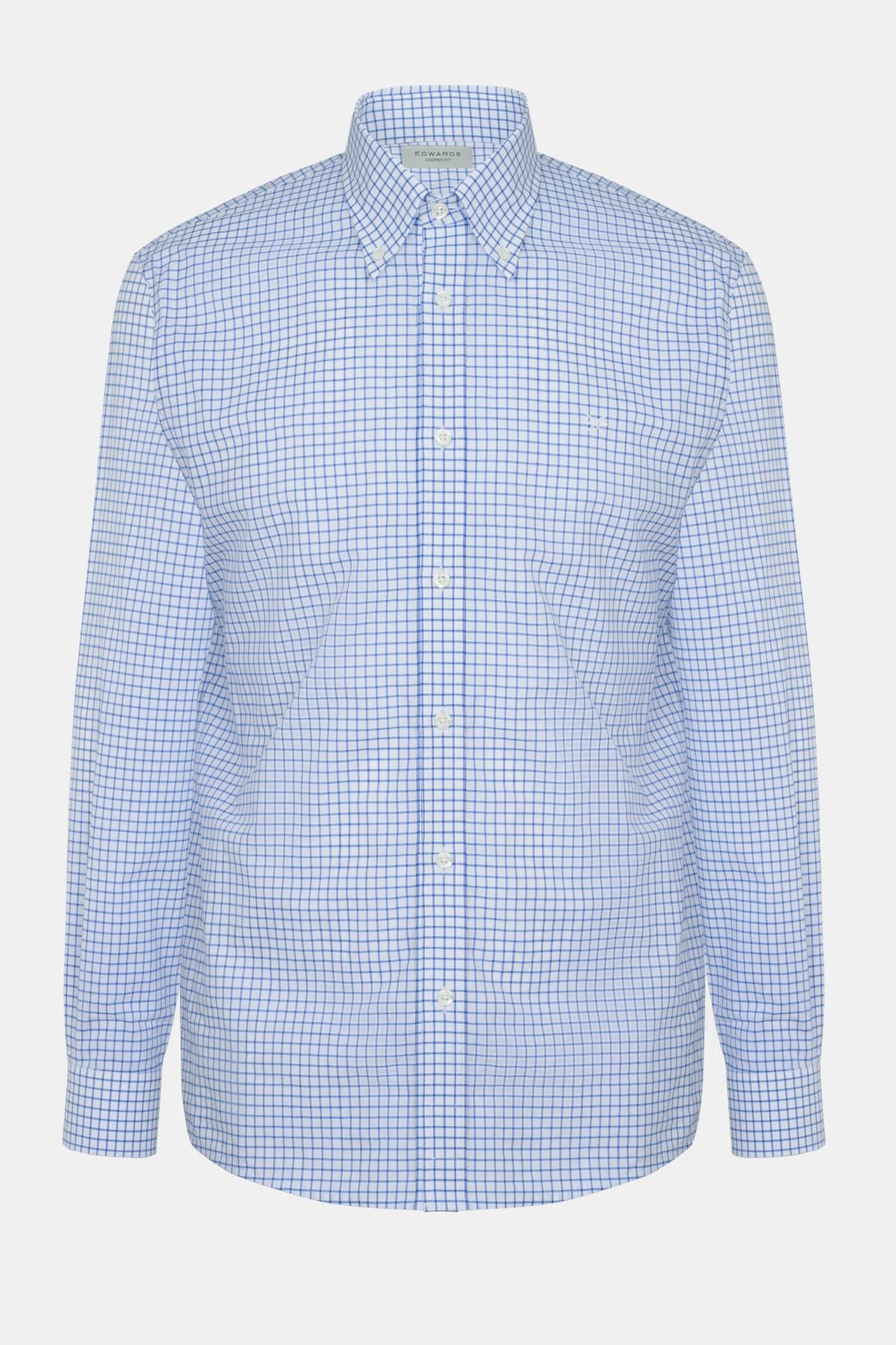 Erkek Mavi Cooper Fit Düğmeli Yaka Pötikare Desenli Spor Gömlek