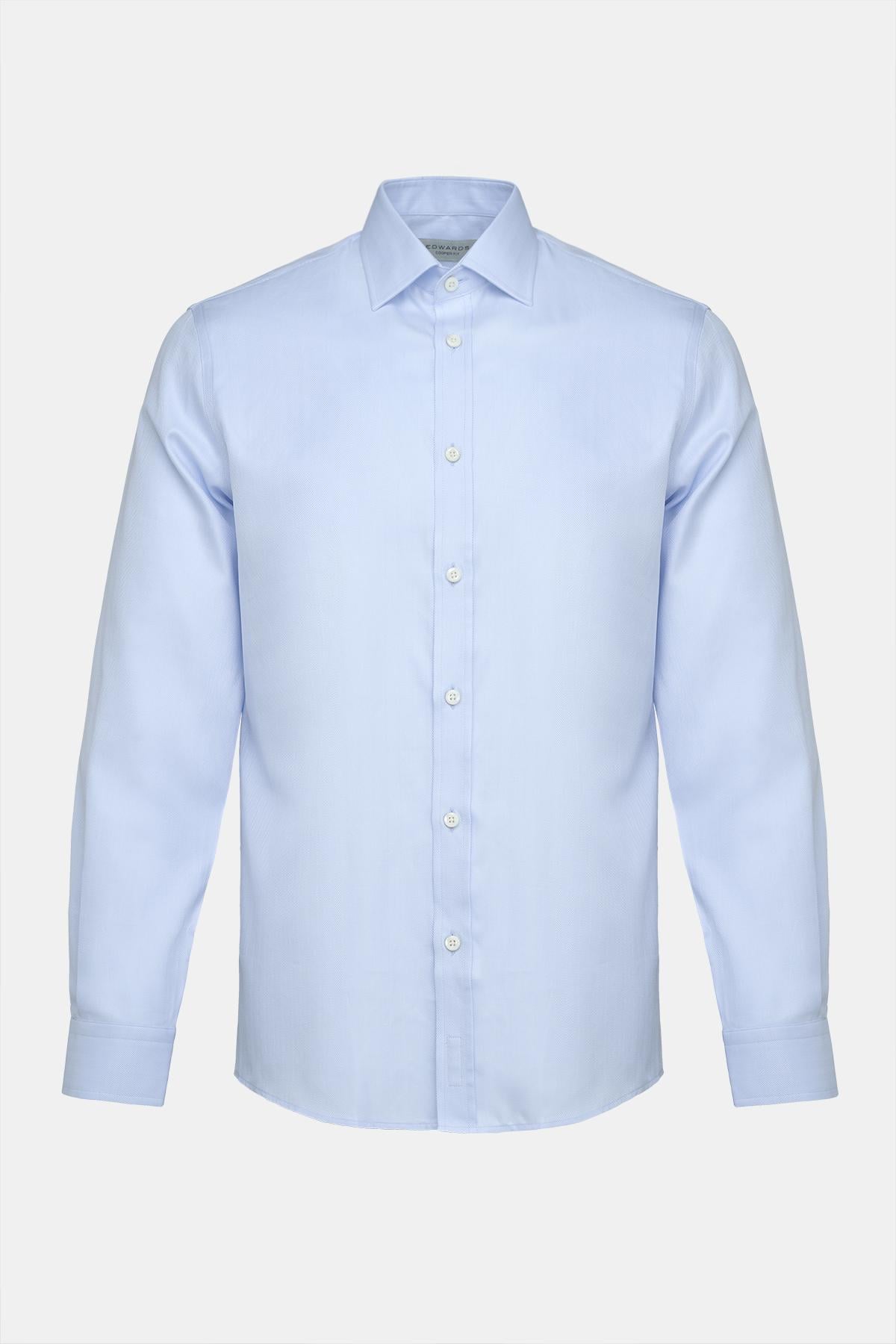Erkek Mavi Cooper Fit Kravat Yaka Balıksırtı Klasik Gömlek