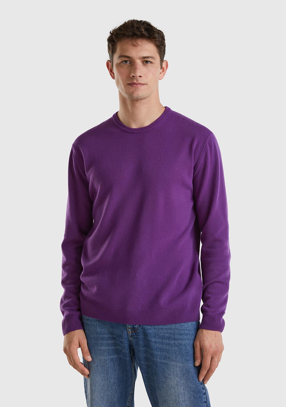 Erkek Mor Bisiklet Yaka Merino Kazak. Koyun Yünü İçerir