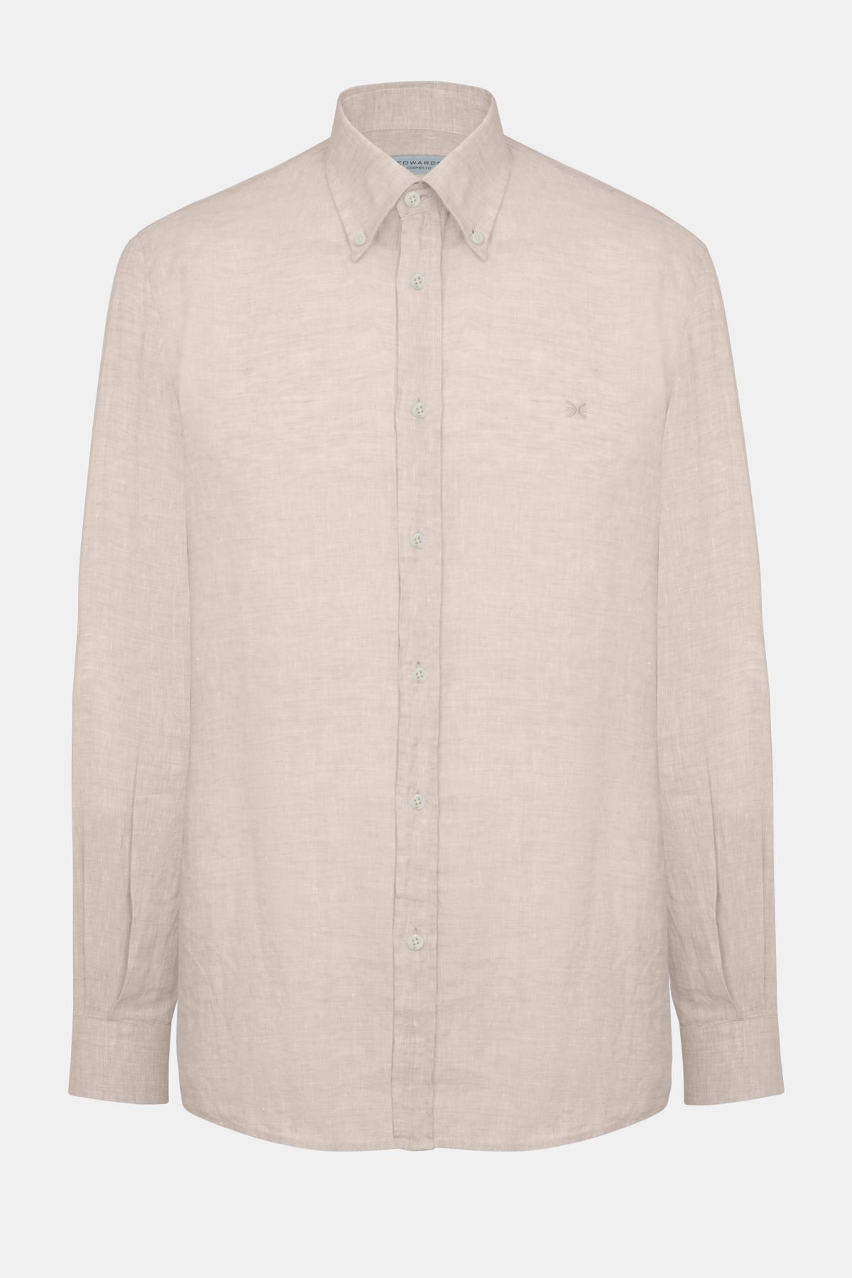 Erkek Natural Cooper Fit Düğmeli Yaka İrlanda Keten Spor Gömlek