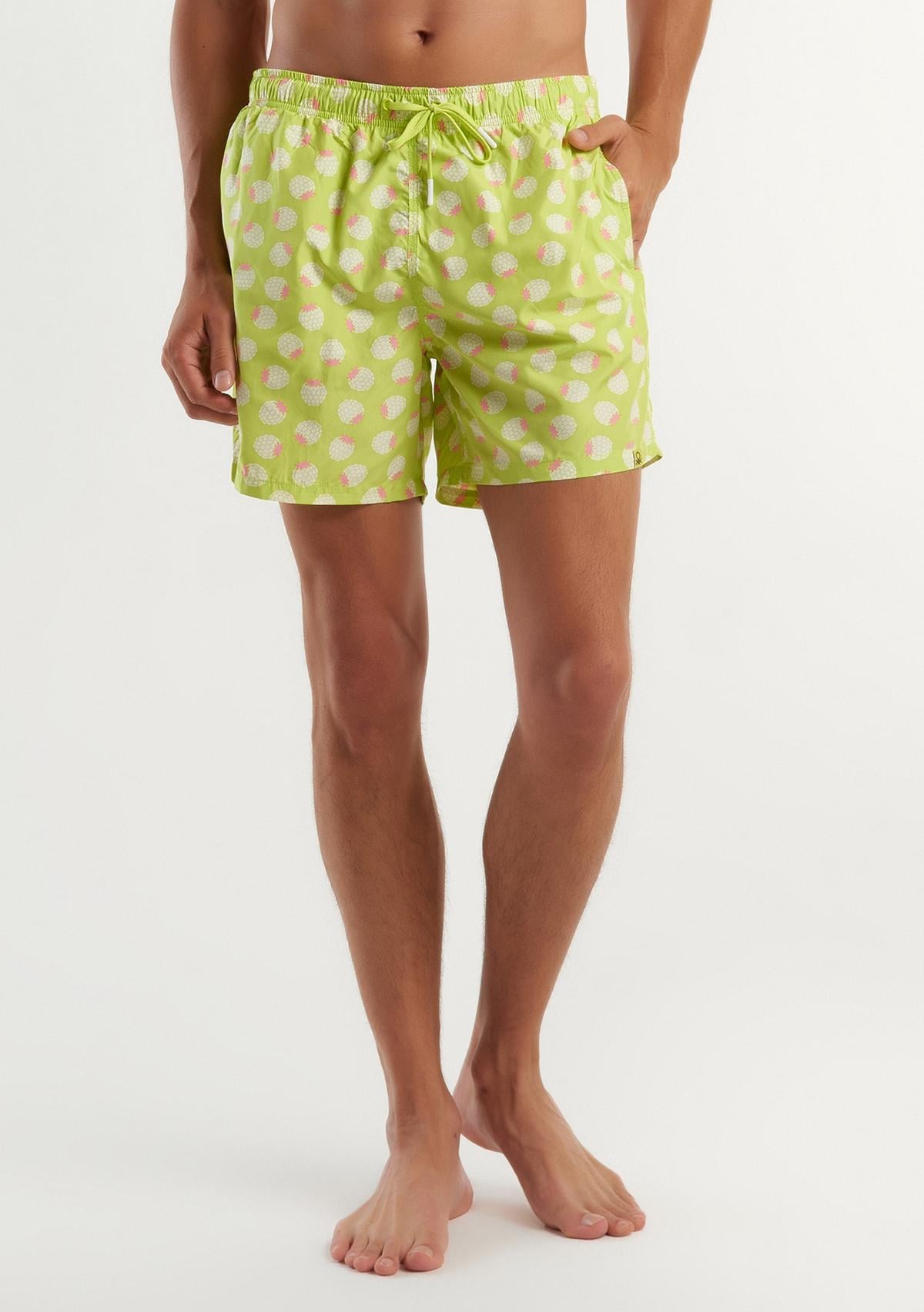 Erkek Neon Yeşil Tamamı Desenli Logo Detaylı Cüzdan Detaylı Deniz Şortu