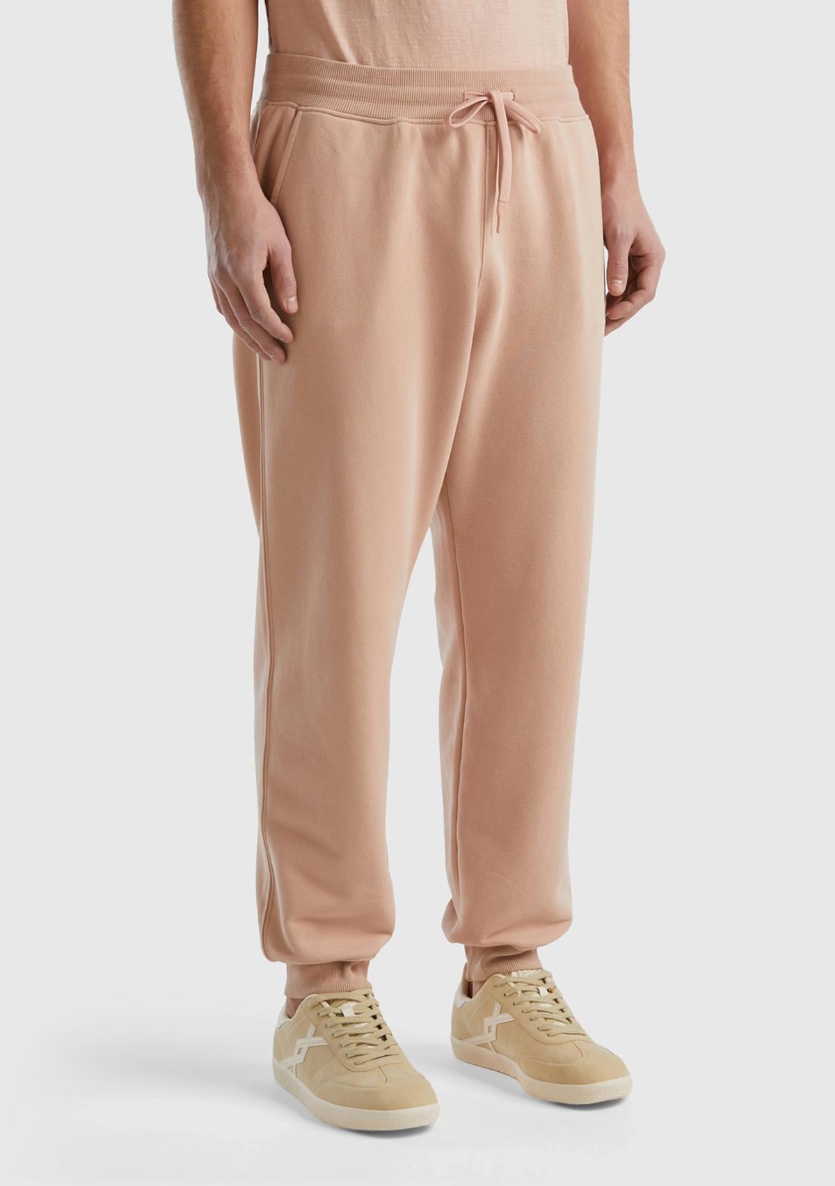 Erkek Pudra Pamuk Karışımlı Beli ve Paçası Büzgülü Eşofman Altı