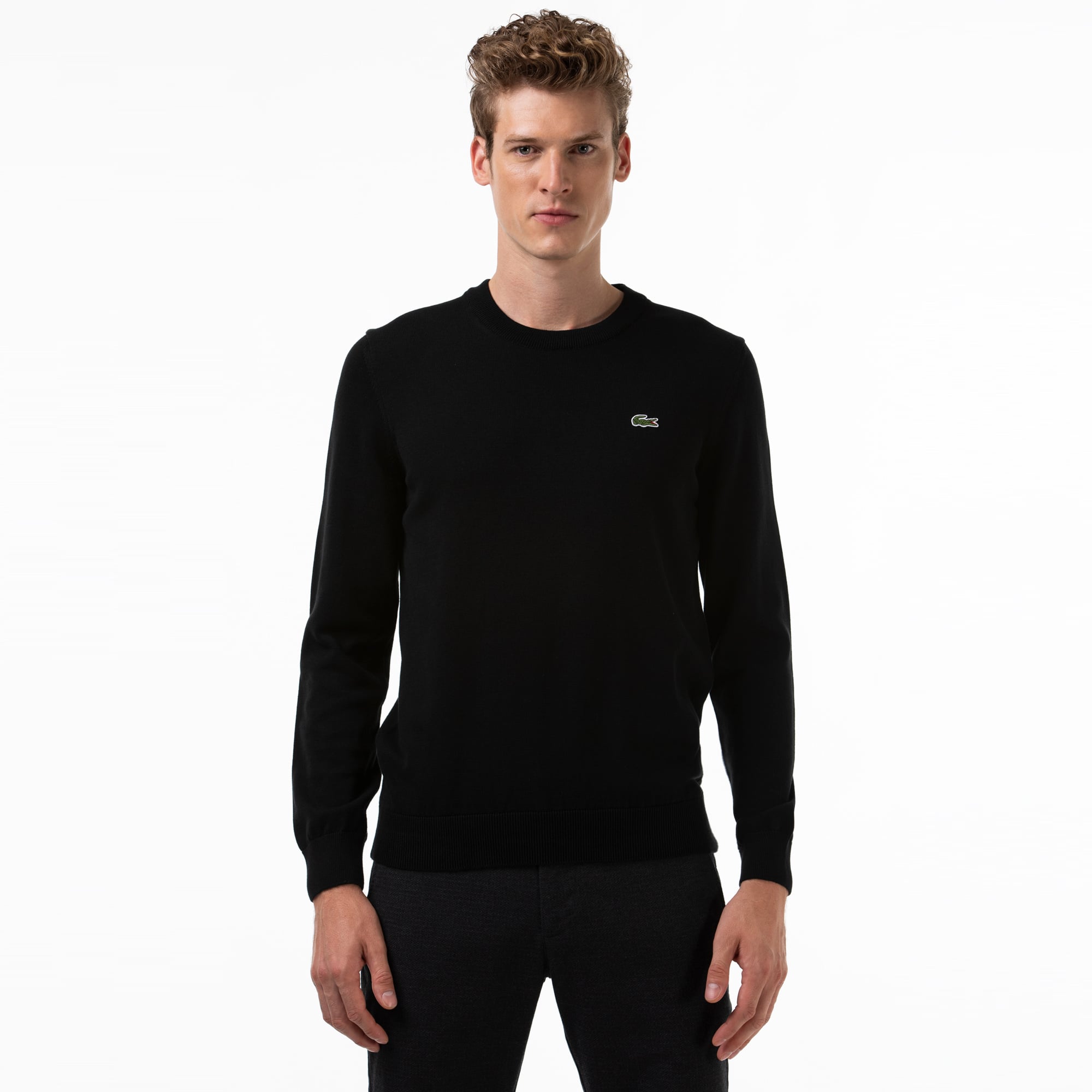 Lacoste'un 90 yıllık triko mirasını yansıtan kazak, sade ve zarif duruşuyla öne çıkıyor. Organik pamuk kumaşıyla hem hafiflik hem de konfor sunarken, bisiklet yaka tasarımı ve nervürlü manşet detayları modern bir görünüm kazandırıyor. Sağ manşette yer alan kontrast çizgi ve göğüsteki ikonik timsah logosu, markanın sportif şıklığını tamamlıyor.